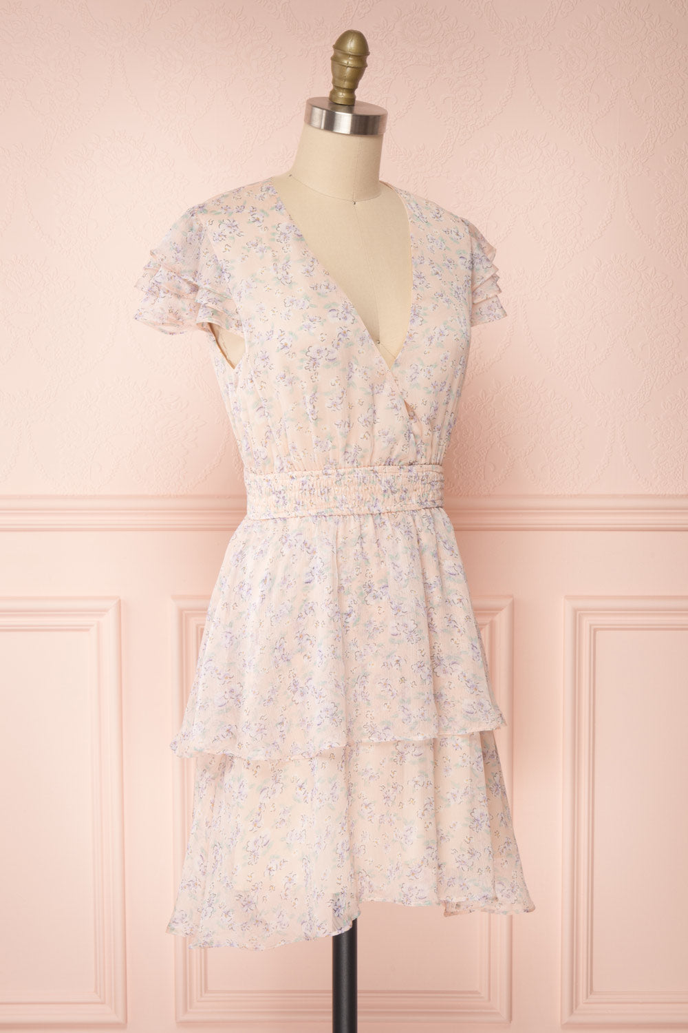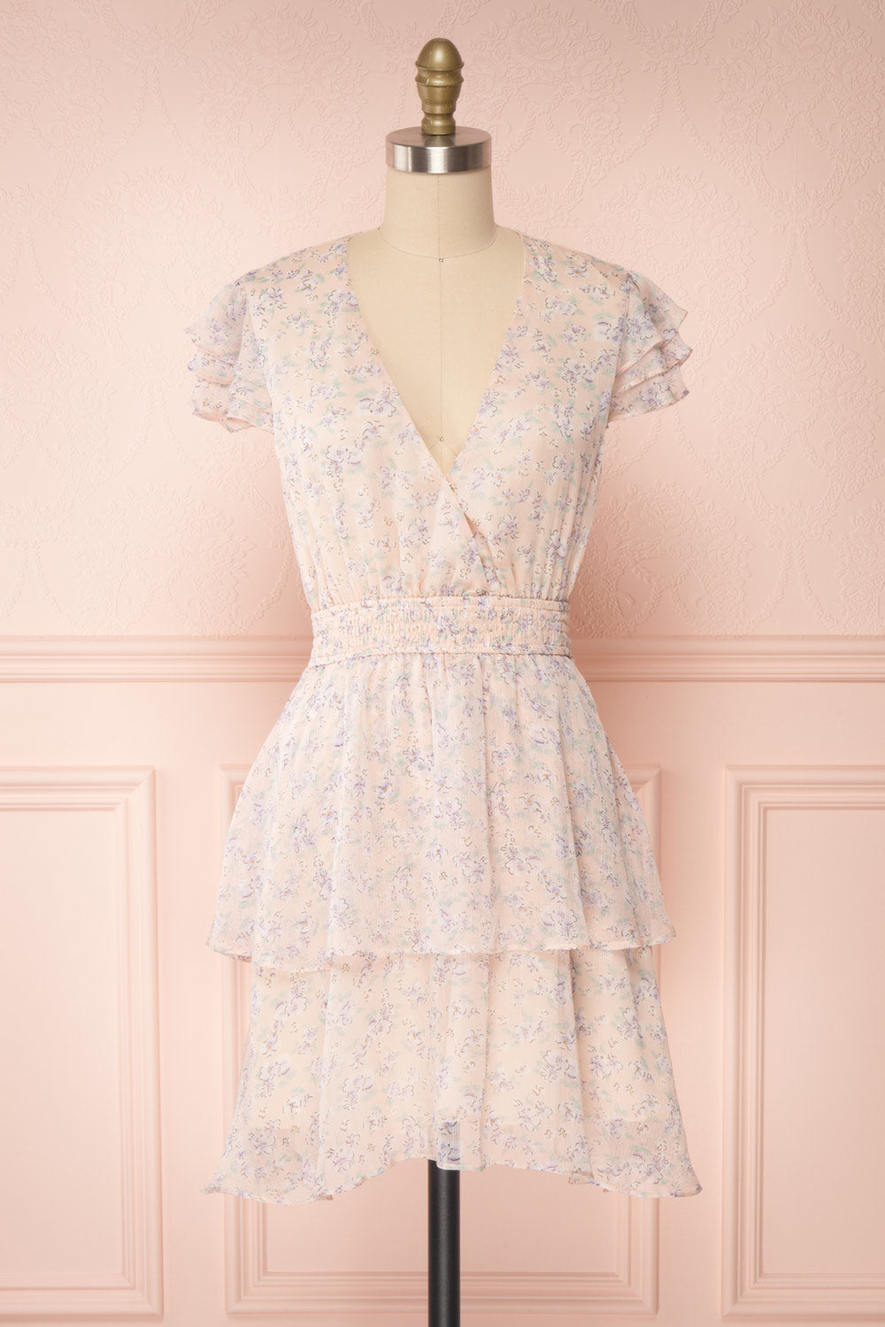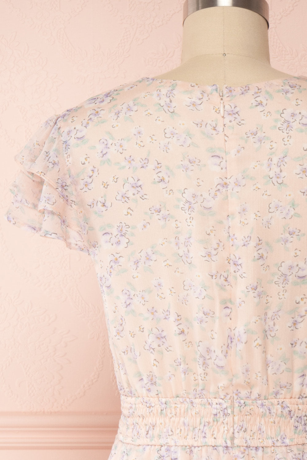 Cette robe fleurie vous donnera envie de profiter des belles journées d'été au maximum! Son tissu de chiffon léger et sa coupe évasée vous donneront amplement de liberté dans vos mouvements, alors que ses volants placés sur la jupe et les manches ajouteront du volume à votre look. Vous trouverez la fermeture éclair placée au dos particulièrement pratique.