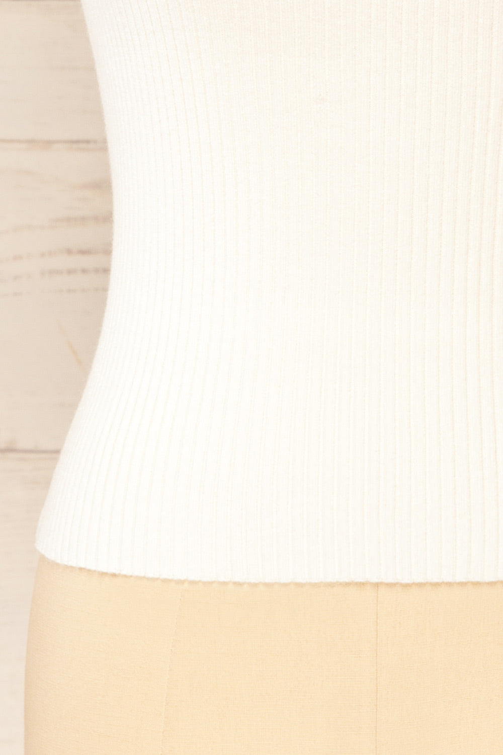 Restez cool et élégante cet été avec cette camisole côtelée ivoire avec un décolleté rond bas et flatteur. Cette pièce polyvalente est parfaite à associer avec votre short préféré pour un look décontracté et tendance. Vous adorerez créer des tenues avec cet indispensable incontournable qui dégage une allure chic et sans effort.