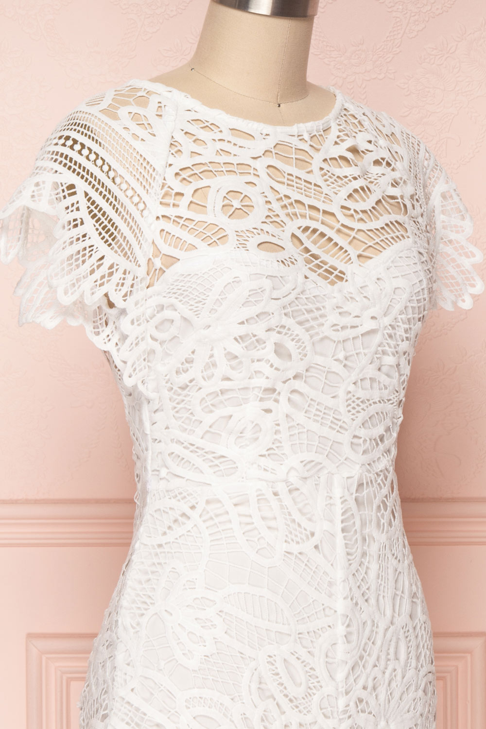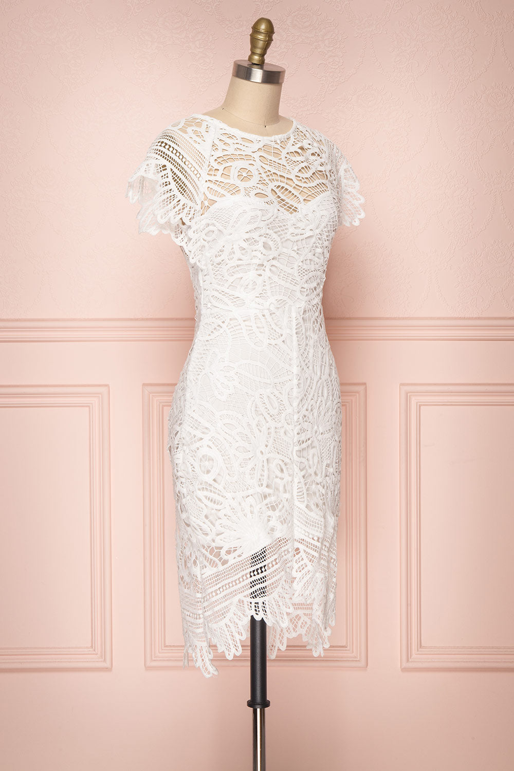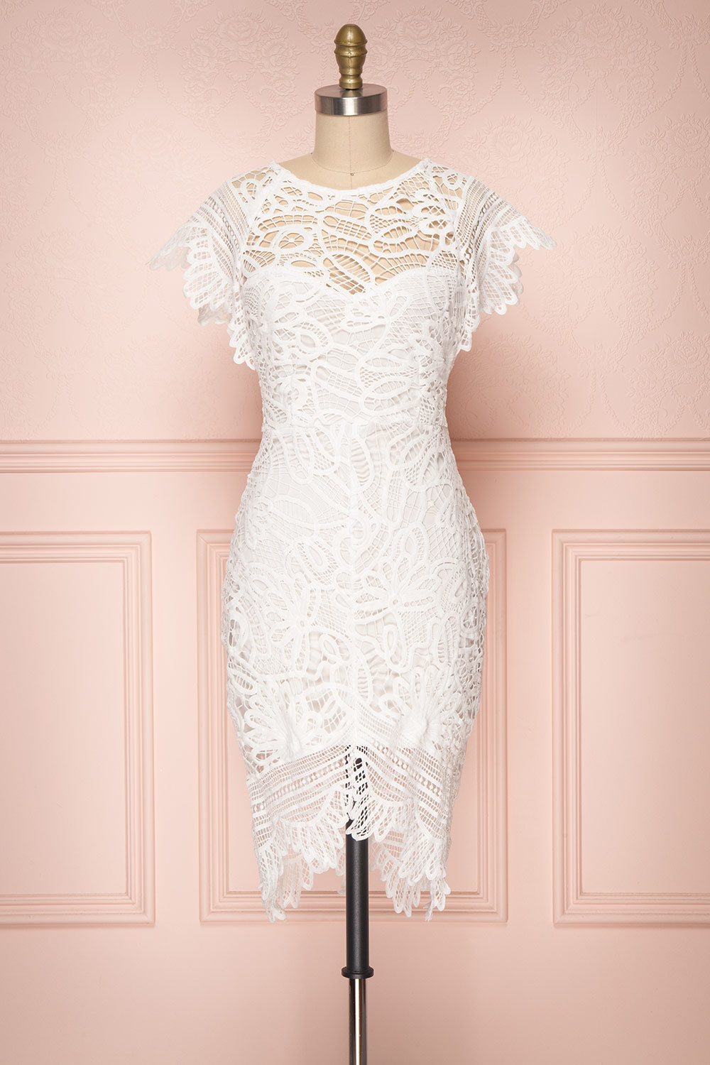 The soft elegance of this cocktail dress will accompany you to all special occasions! The fitted cut will comfortably highlight your figure thanks to the stretch lining, while the openwork lace will subtly reveal your skin at the neckline, the back, and the bottom of the skirt. The back zipper and buttons at the nape of the neck will prove practical.