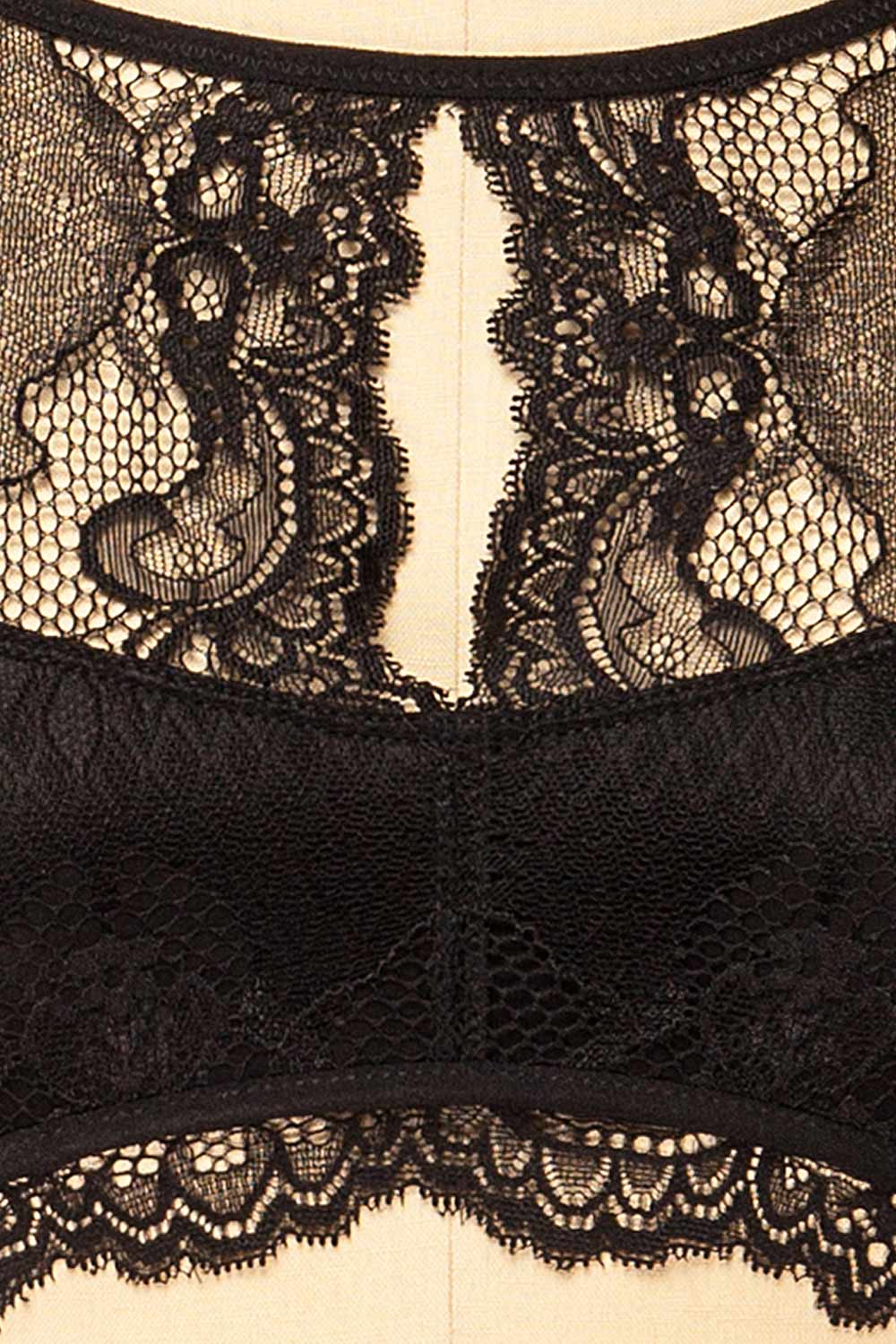 Cette bralette en dentelle noire est le choix parfait pour une allure sophistiquée et sensuelle. Elle est dotée une fermeture à crochet et œillet sur le dos, ainsi qu'une encolure de style licou. L'ouverture au dos et au buste apporte une touche de séduction subtile, tandis que le tissu en dentelle raffinée confère une élégance intemporelle.