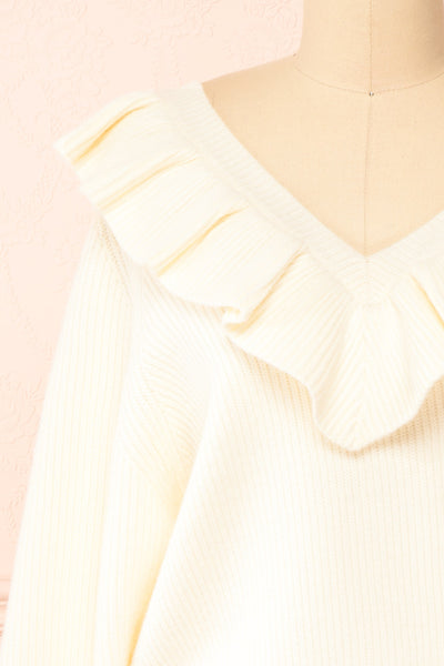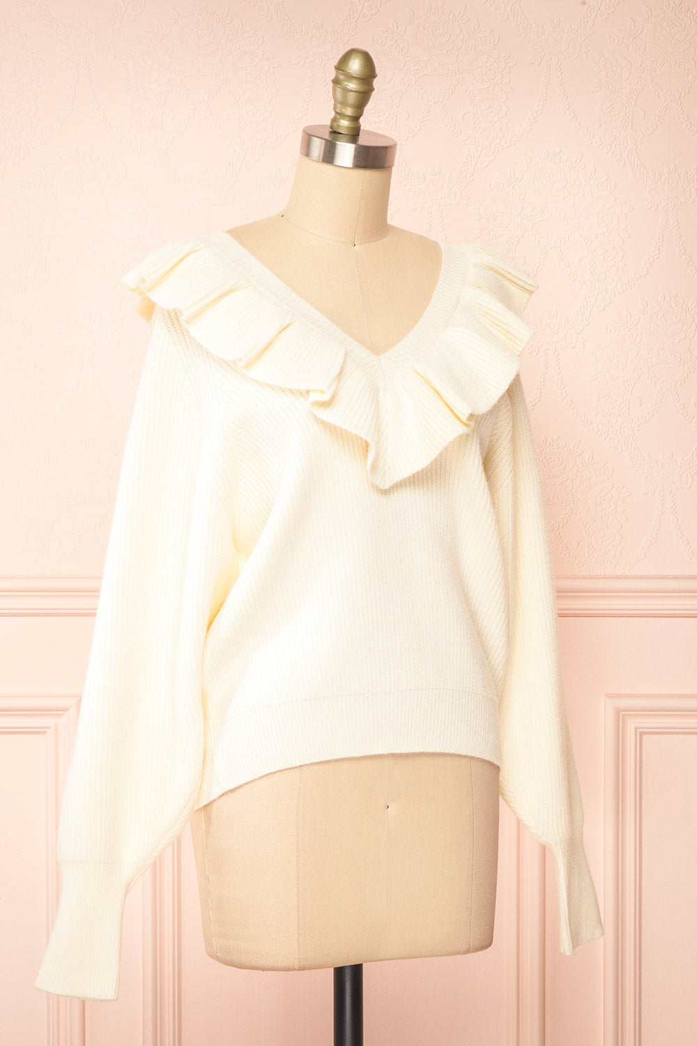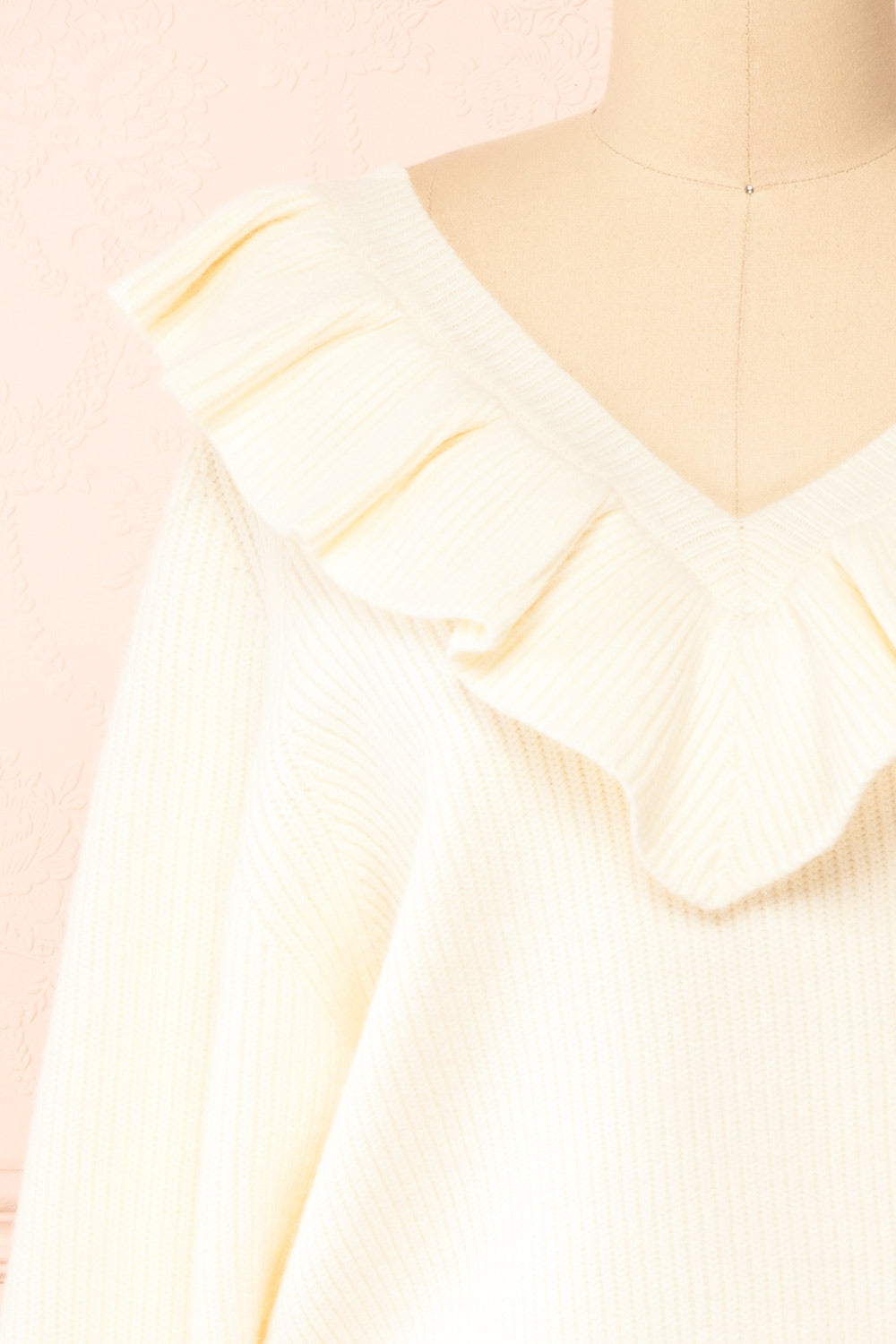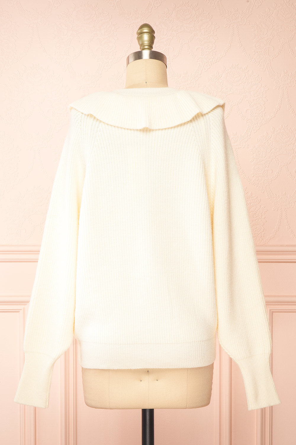 Miaro Ivoire | Chandail en Tricot au Col à Volants