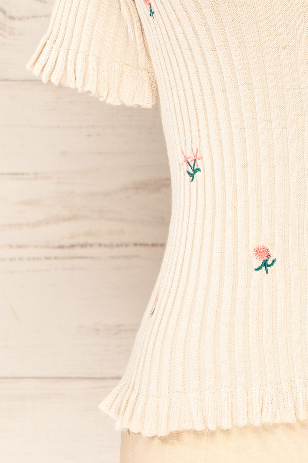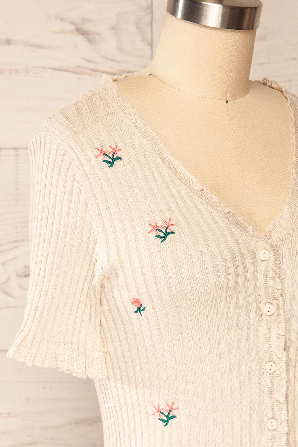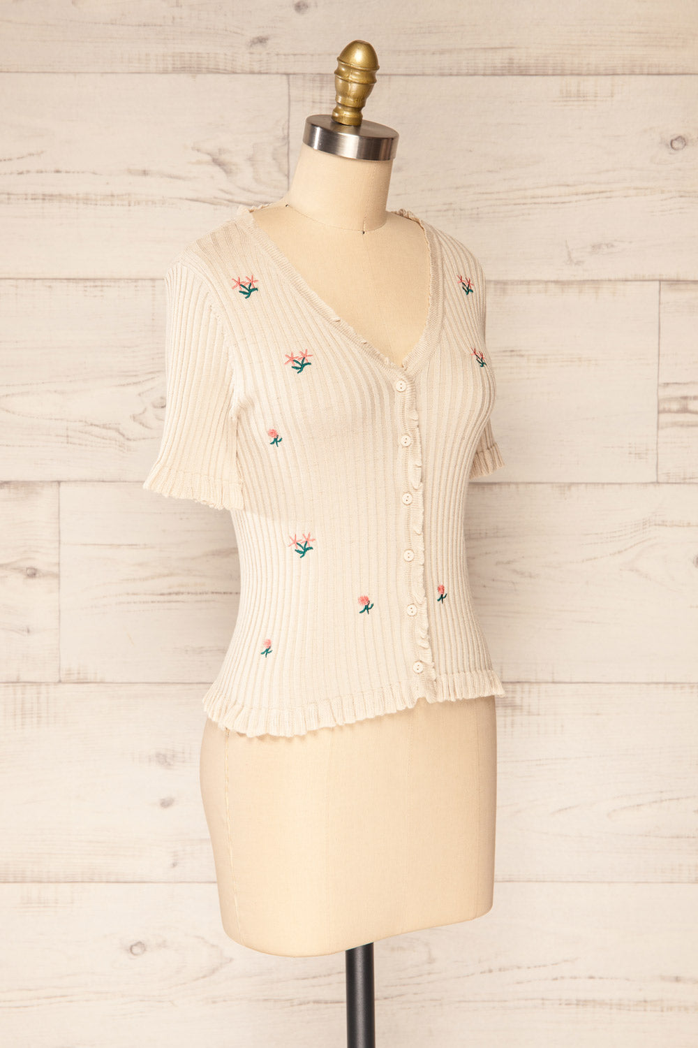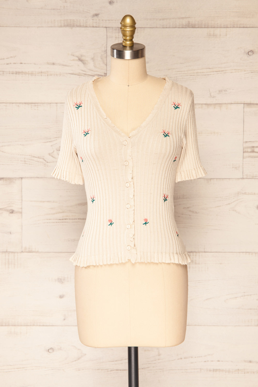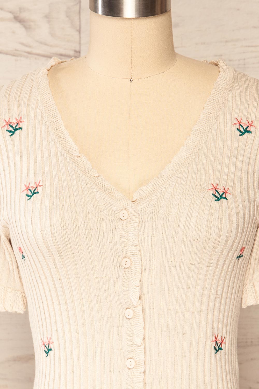 Mikro Beige | Cardigan Écourté Côtelé au Col en V