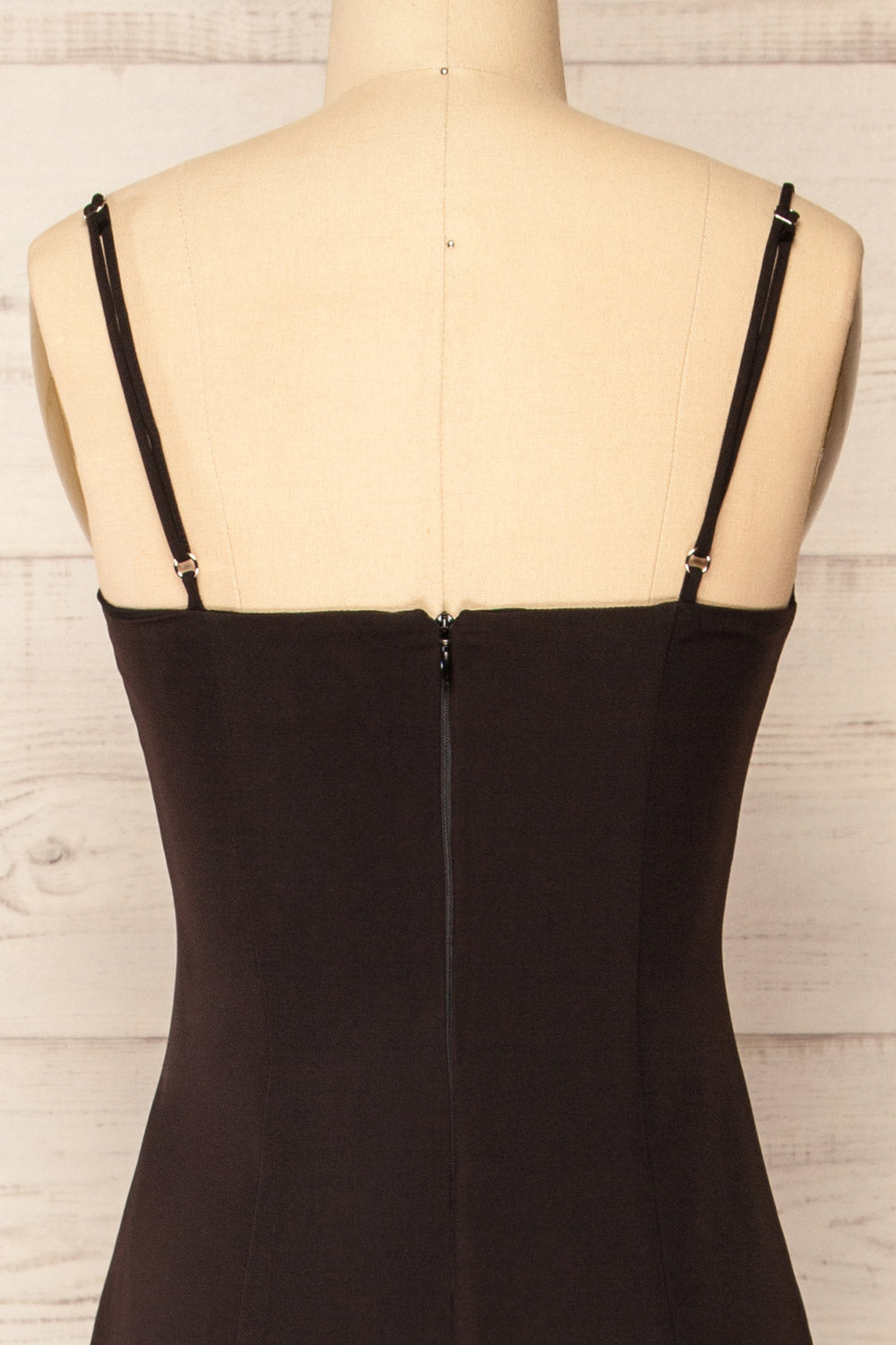 Vous serez une sublime vision dans cette élégante robe de soirée faite à Montréal! La coupe sirène classique fera tourner les têtes, alors que le tissu lisse vous assurera confort. L'encolure carrée, les bretelles minces et la haute fente latérales dévoileront votre peau avec classe. Elle est aussi munie d'une fermeture éclair au dos. Affichez un style distingué en choisissant des bijoux argentés et des escarpins noirs.