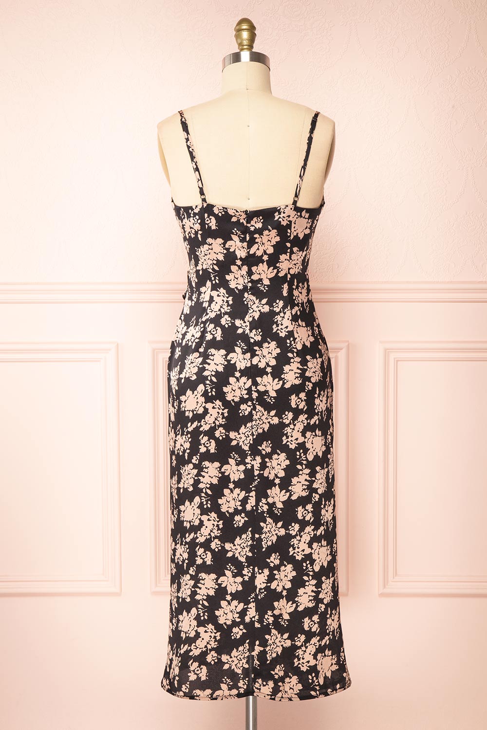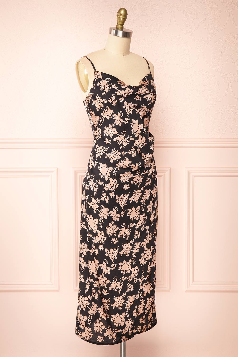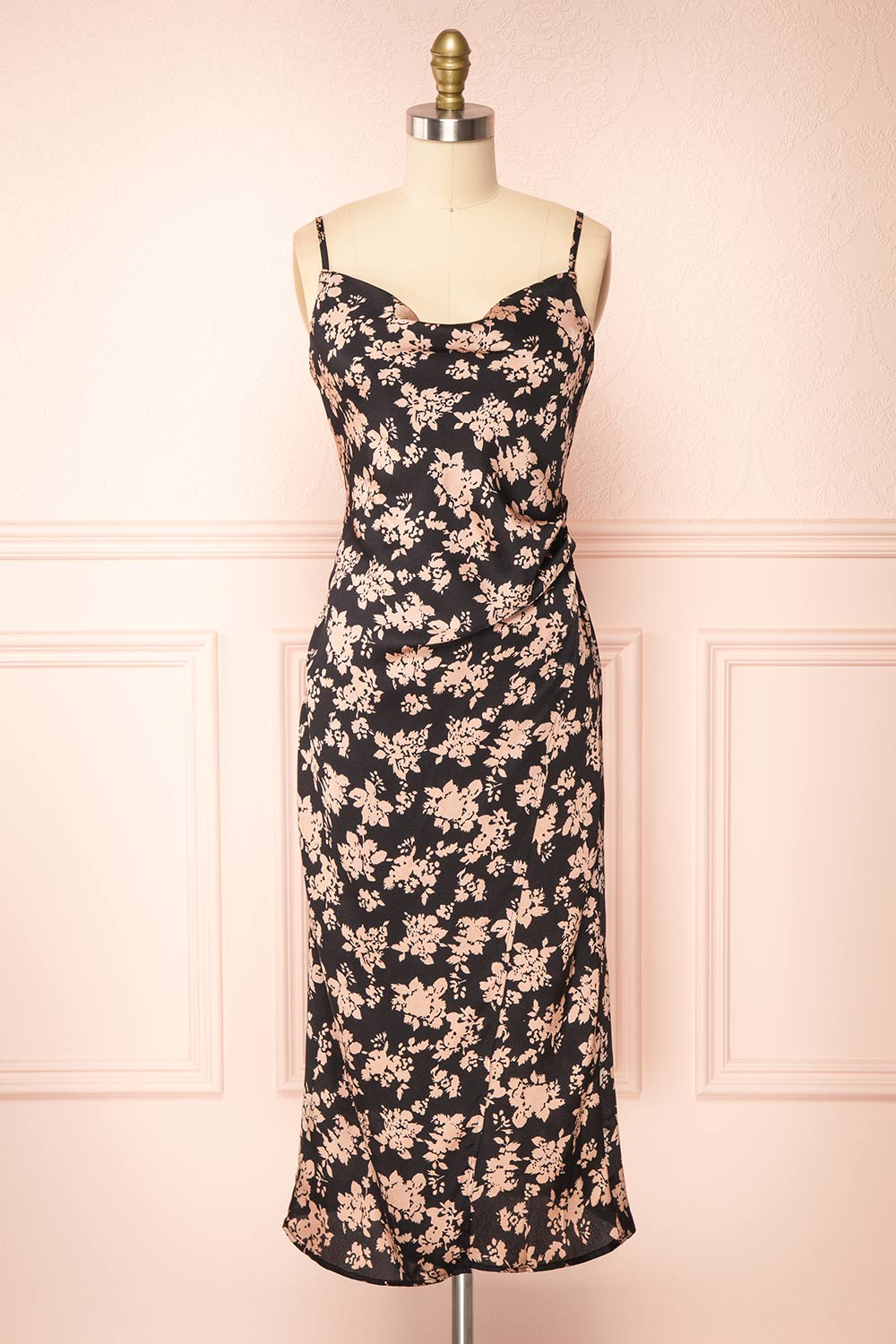 Vous serez tout simplement ravissante dans cette robe fleurie midi! Son élégant tissu satiné vous fera ressortir de la foule tandis que son col baveux et sa fente latérale ajouterons une touche séductrice à votre tenue. Sa coupe ajustée complimentera votre magnifique silhouette tout en vous laissant libre de vos mouvements. Vous pourrez l'ajuster à votre confort grâce à ses bretelles ajustables.