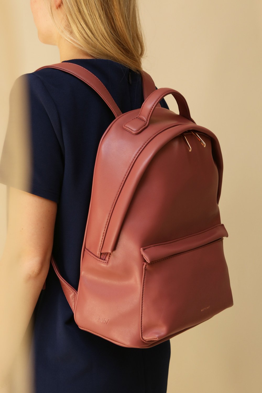 Cet adorable sac à dos de Matt & Nat est l'accessoire pratique indispensable cette saison! Vous serez séduite par sa forme classique, et son cuir végétalien. Vous garderez vos essentiels en sécurité, et avec style, grâce à ses bretelles ajustables, ses fermetures éclairs au compartiment principal et à la petite poche du devant, sa poche intérieure pour téléphone portable, et une poche dissimulée à l'arrière. De plus, il pourra transporter votre ordinateur portable 13" pour que vous puissiez travailler n'importe quand, et n'importe où!