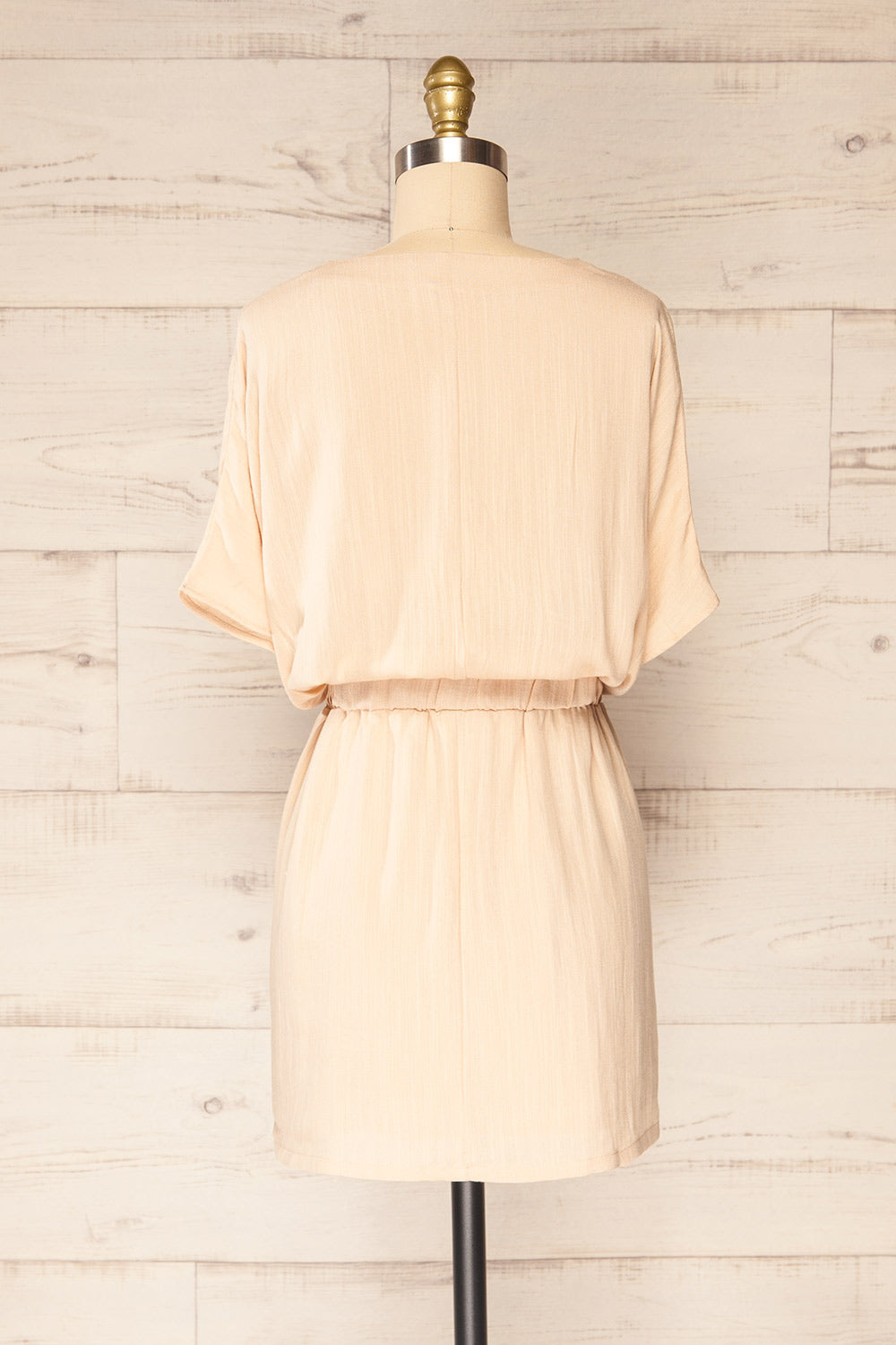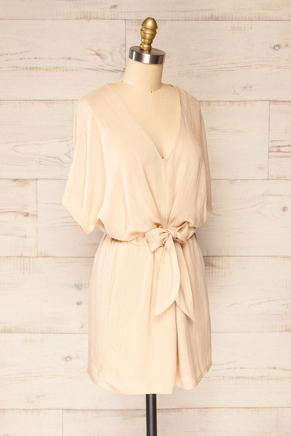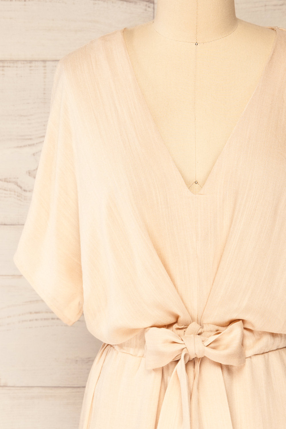 Naousa Beige | Robe Col en V avec Ceinture à Nouer