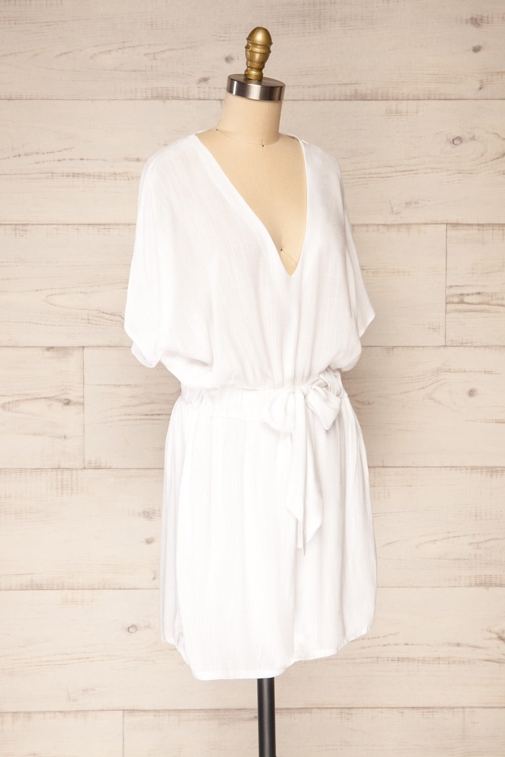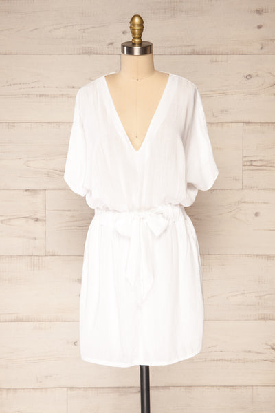 Naousa Blanc | Robe Courte avec Ceinture à Nouer