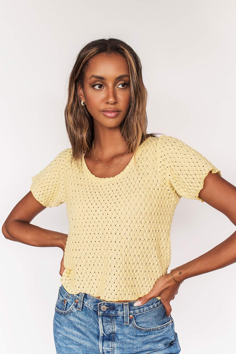 Neomye Jaune | Haut Ajouré à Manches Courtes
