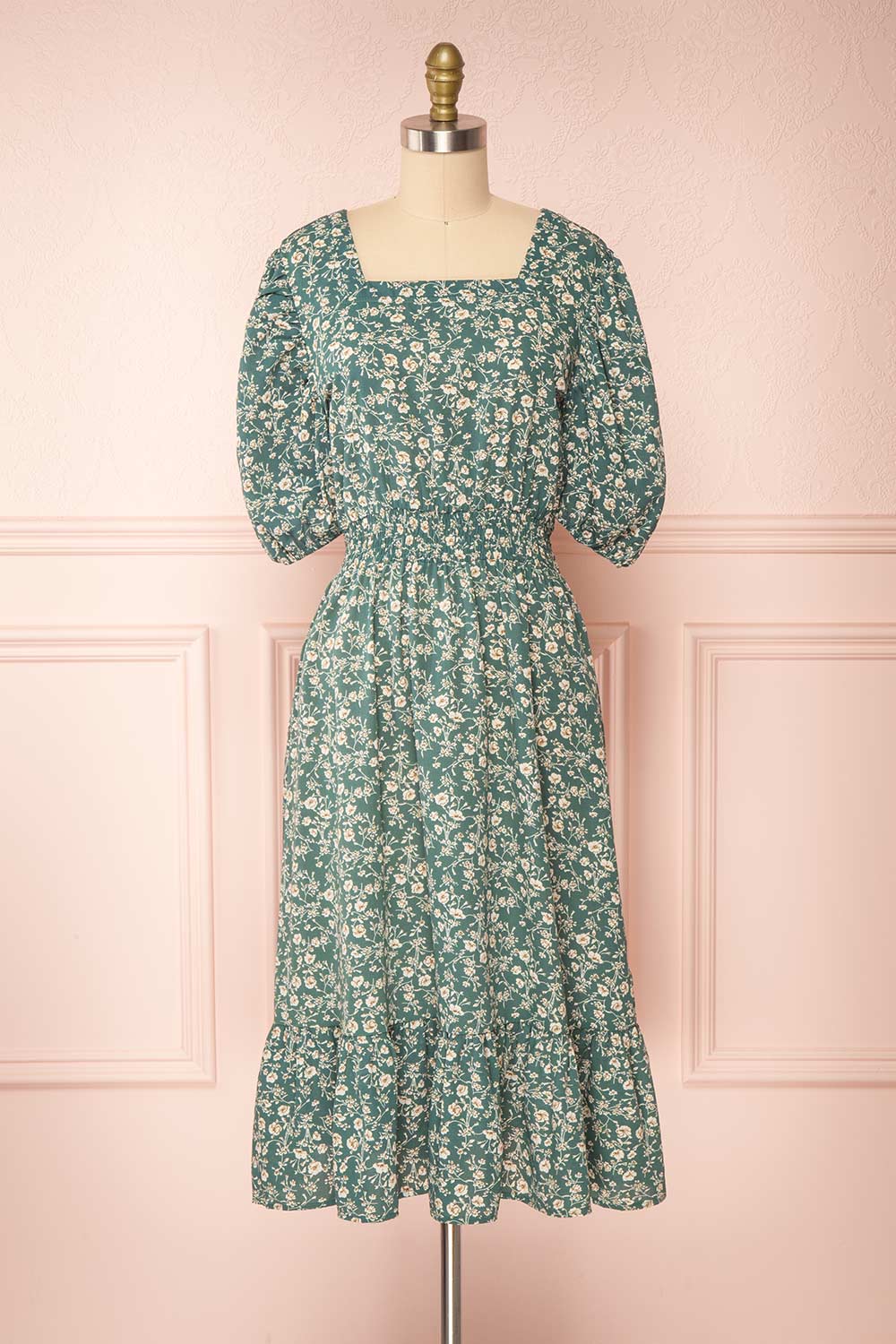 Vous aurez l'air tout simplement ravissante vêtue de cette charmante robe fleurie! Son col carré dévoilera votre peau de façon romantique alors que ses manches 3/4 bouffantes viendront encadrer votre taille. Sa coupe ligne-A flatteuse vous offrira un port confortable et agréable.