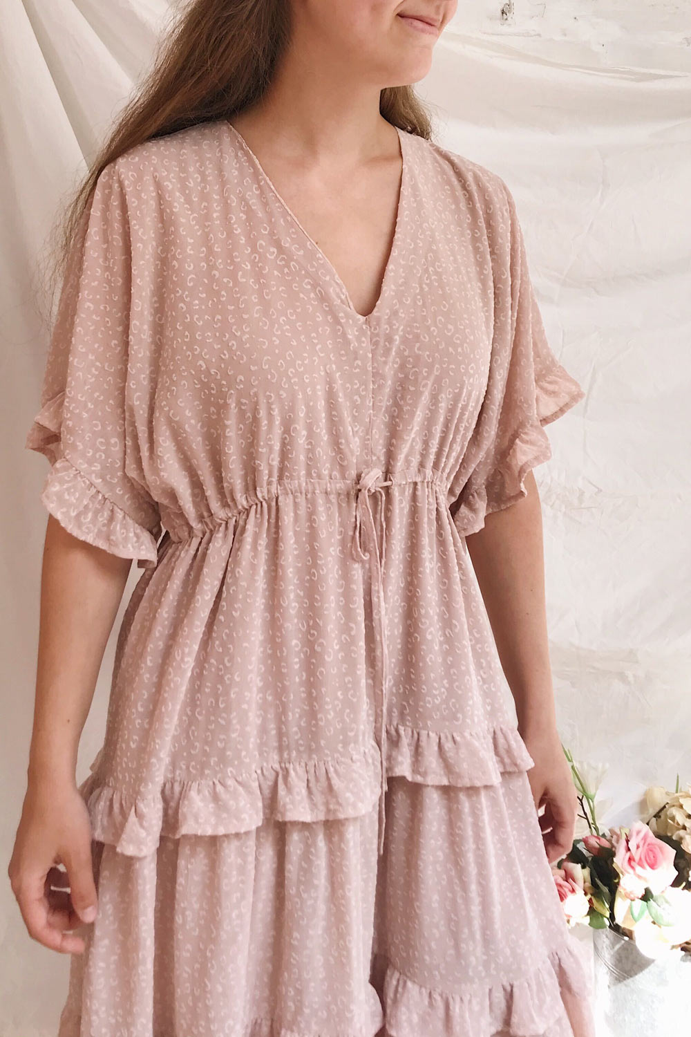 Profitez de votre été dans le plus grand des conforts avec l'aide de cette ravissante robe à volants! Son tissu léger et confortable ainsi que de sa coupe évasée vous suivront dans tous mouvements tout en rendant son port agréable. Vous apprécierez son cordon de serrage placé à la taille alors qu'il vous permettra de souligner votre charmante silhouette.