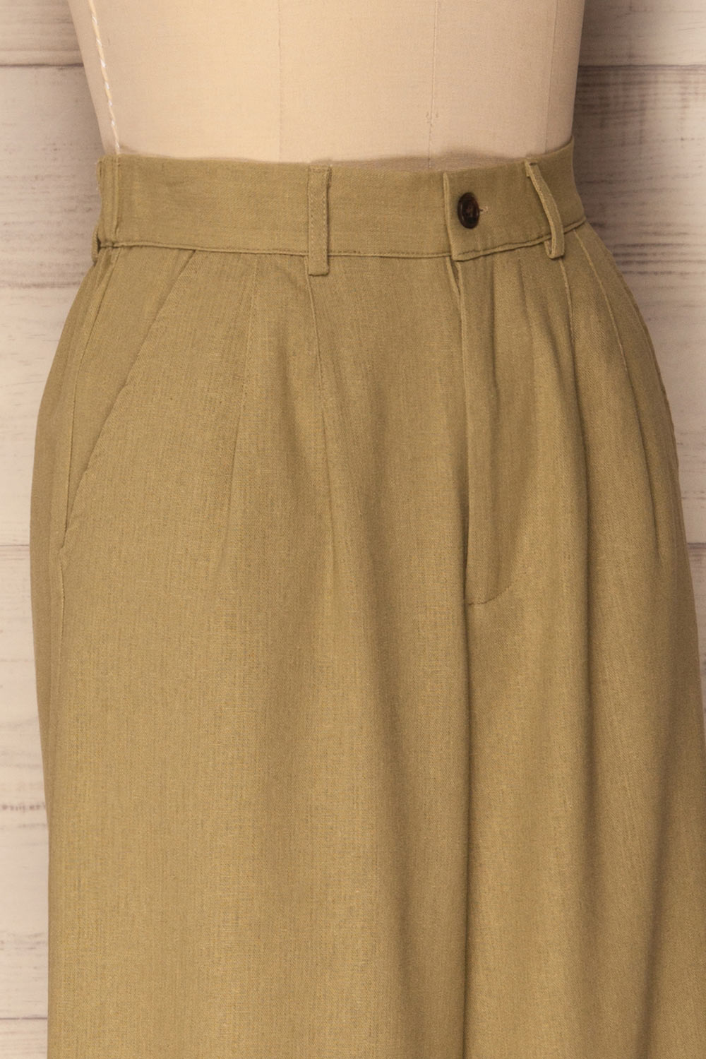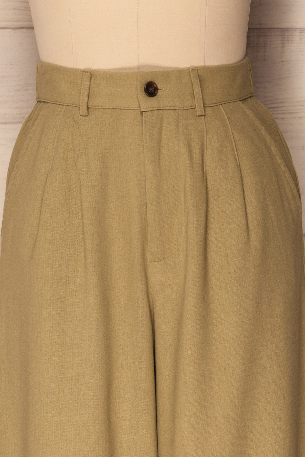 Escape everyday with these pants of natural simplicity! The linen blend fabric and loose fit are lightweight and comfortable, while the button at the front and the elastic waist will prove practical. Pair it with a cropped knit top for a casual outfit, or with a structured jacket for a unique version of the professional ensemble.