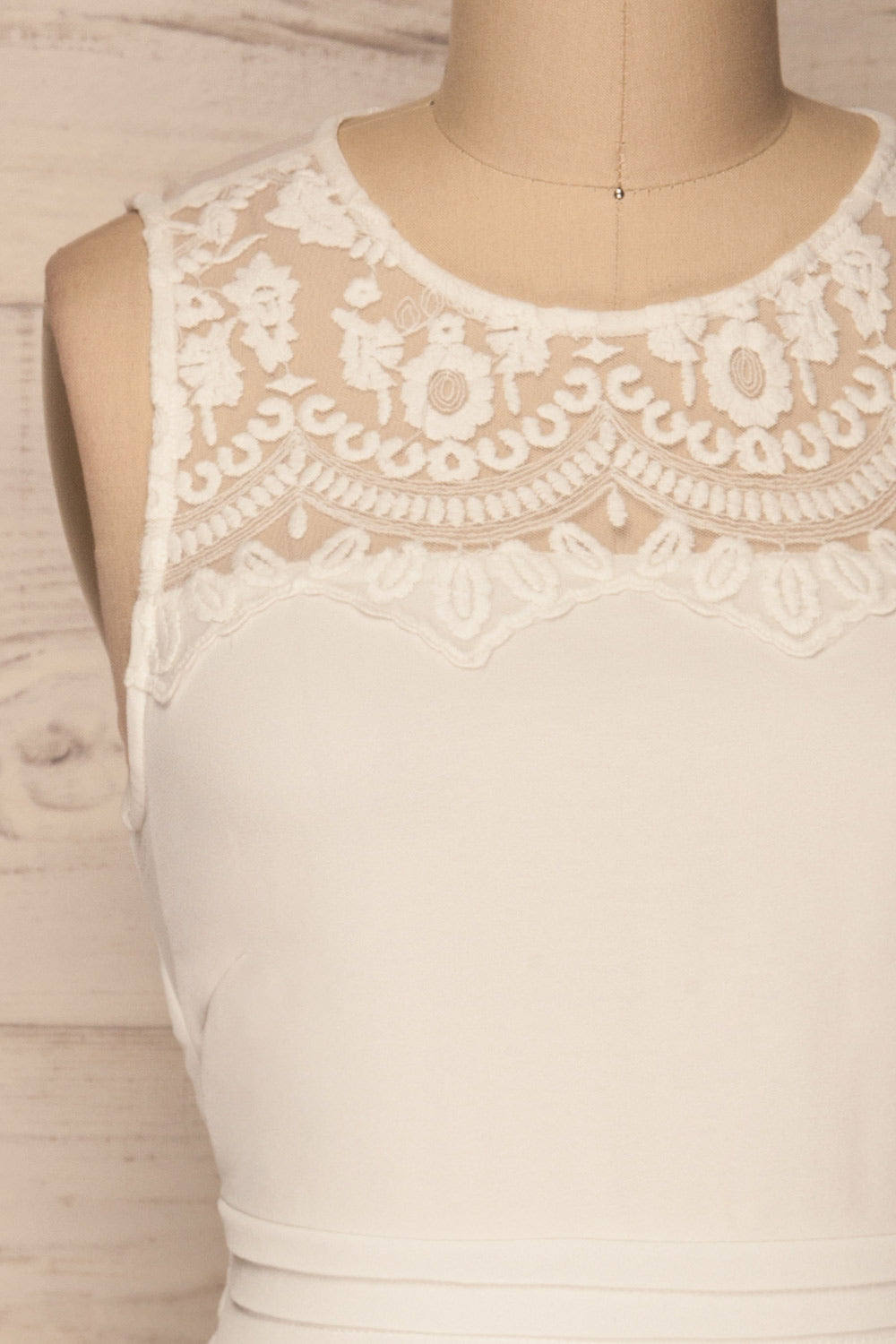 All occasions are good ones for enjoying this beautiful and flattering dress with its discreet charm! The elastic waistband at the back makes it easy to don and ensures your comfort, while the openwork lace of the top contributes to its sophisticated style.