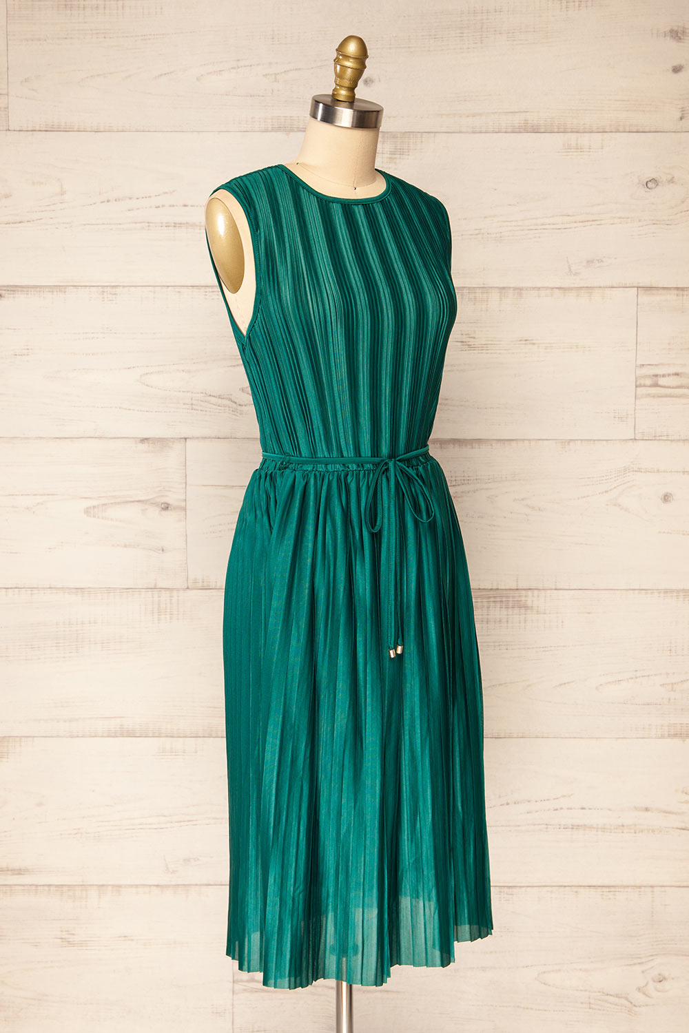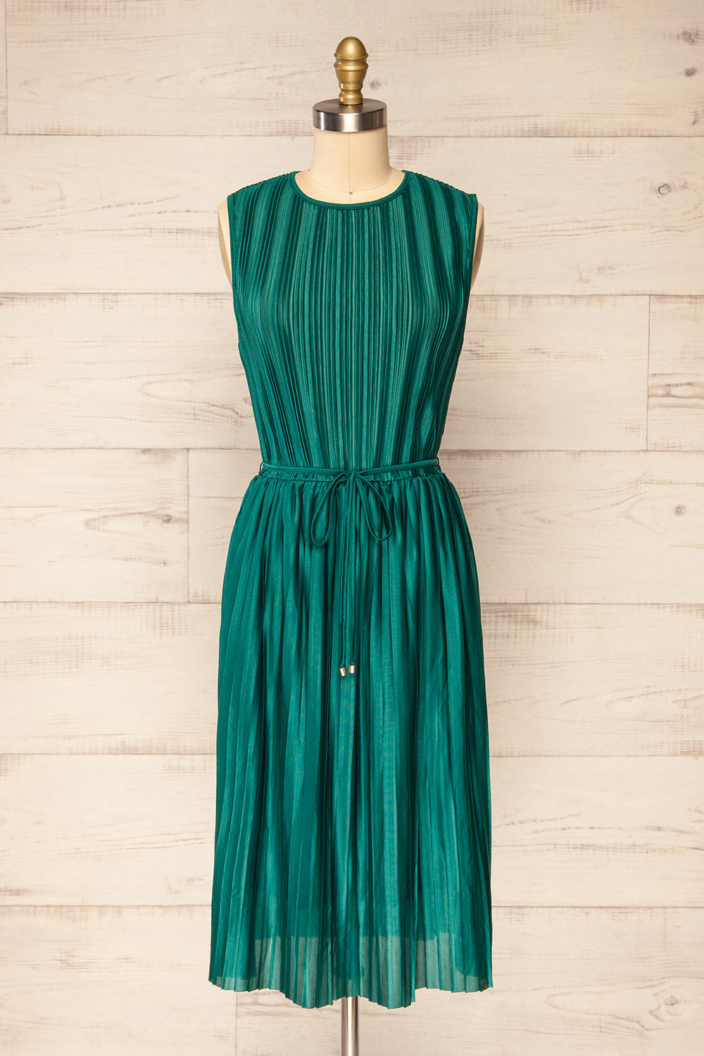 Padstow Vert | Robe Midi Plissée Sans Manches