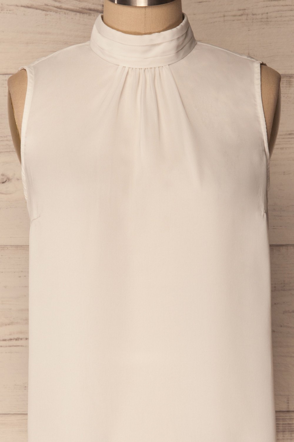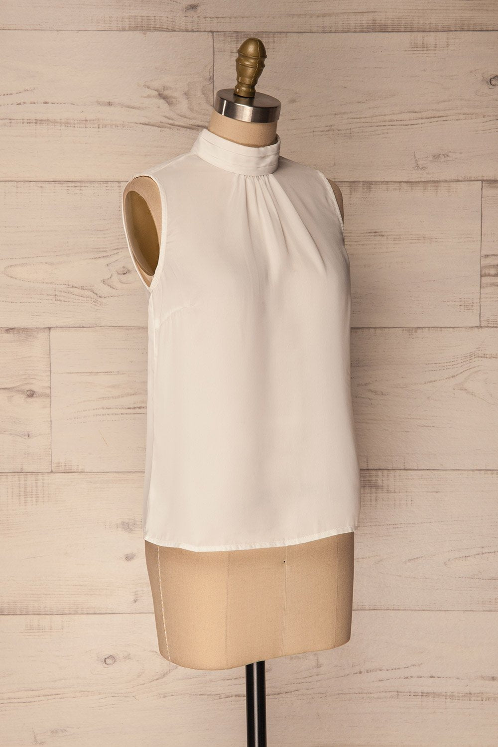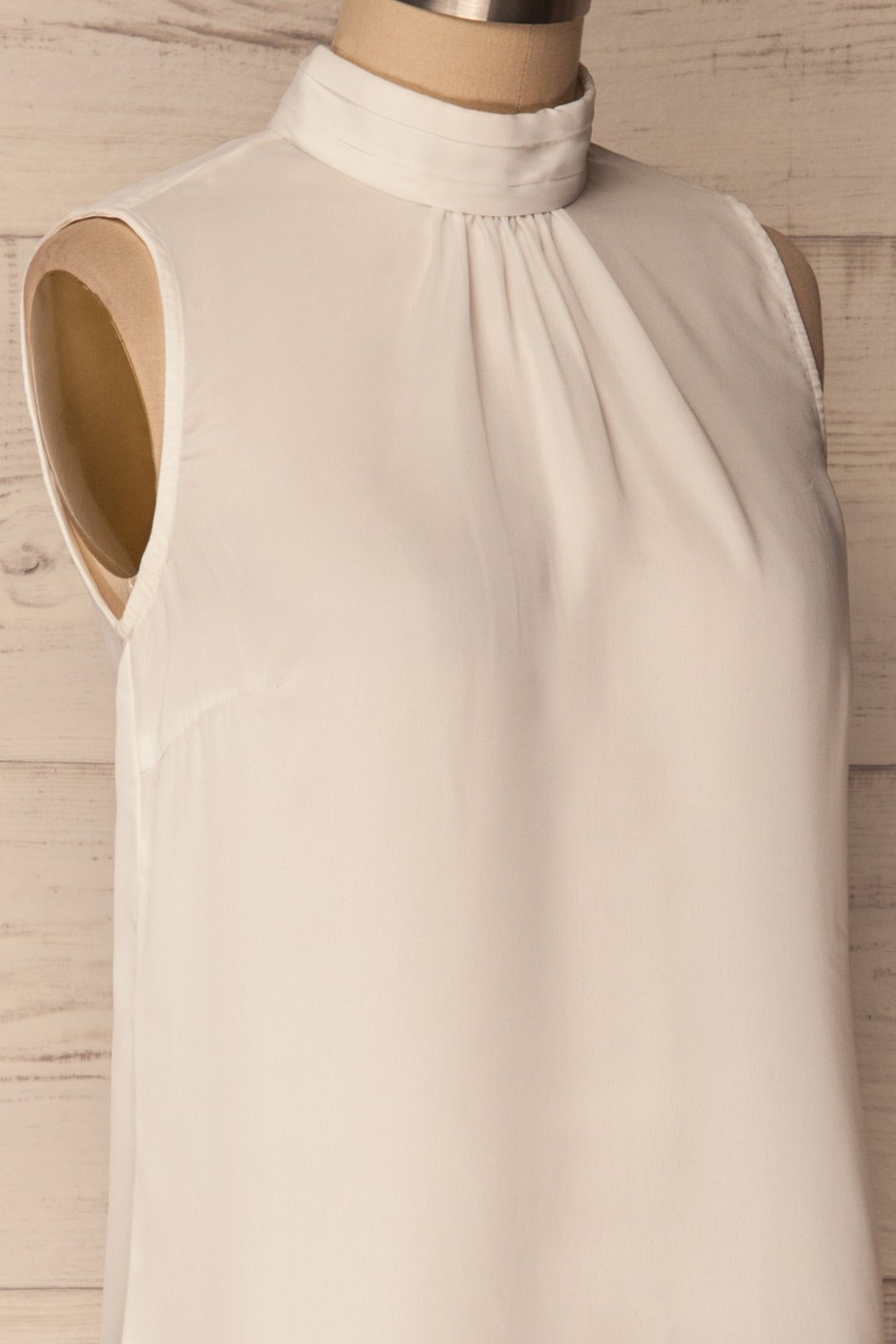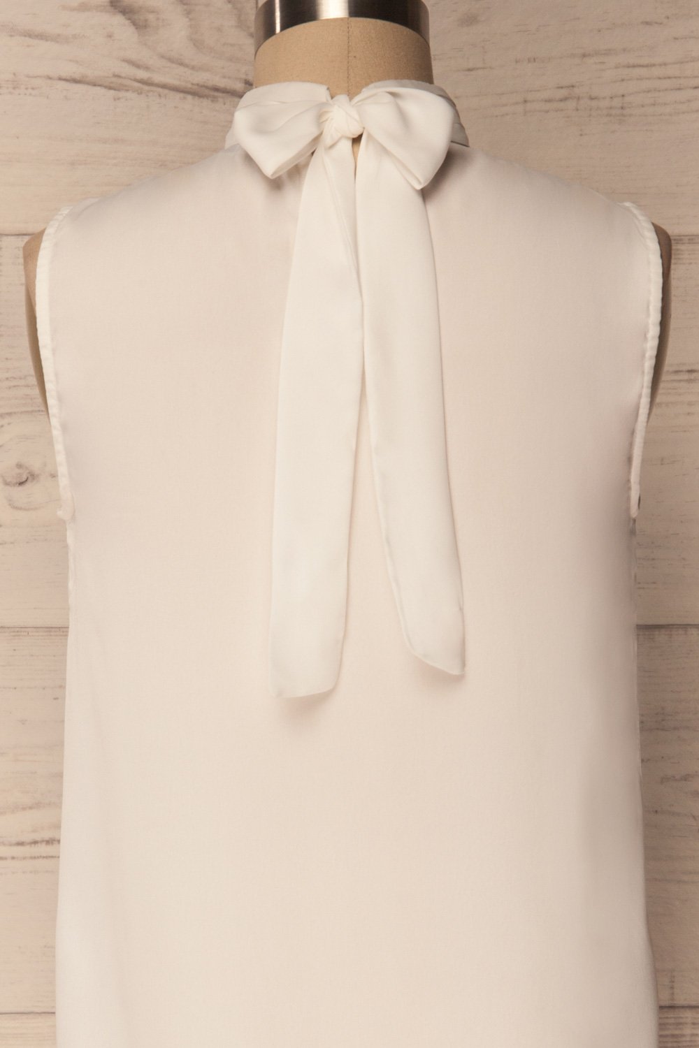 Vous adorerez la polyvalence de ce haut! Son léger tissu satiné vous offrira confort durant toute la journée, alors que son col montant est tendance. Vous pourrez l'enfiler facilement grâce à l'ouverture à la nuque se nouant grâce à une jolie boucle.