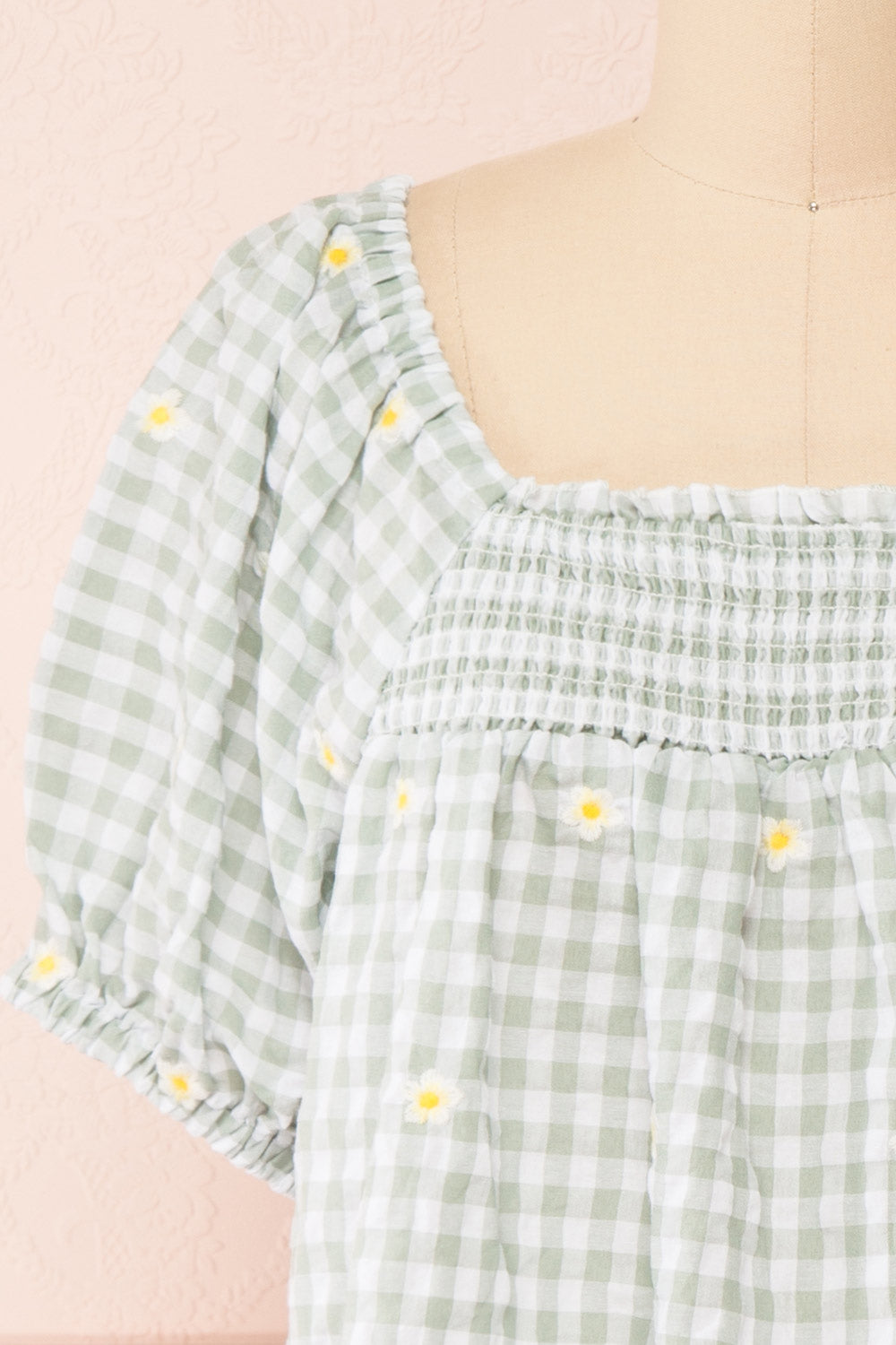 Paloma Vert | Haut à Motif Vichy & Broderie Florale