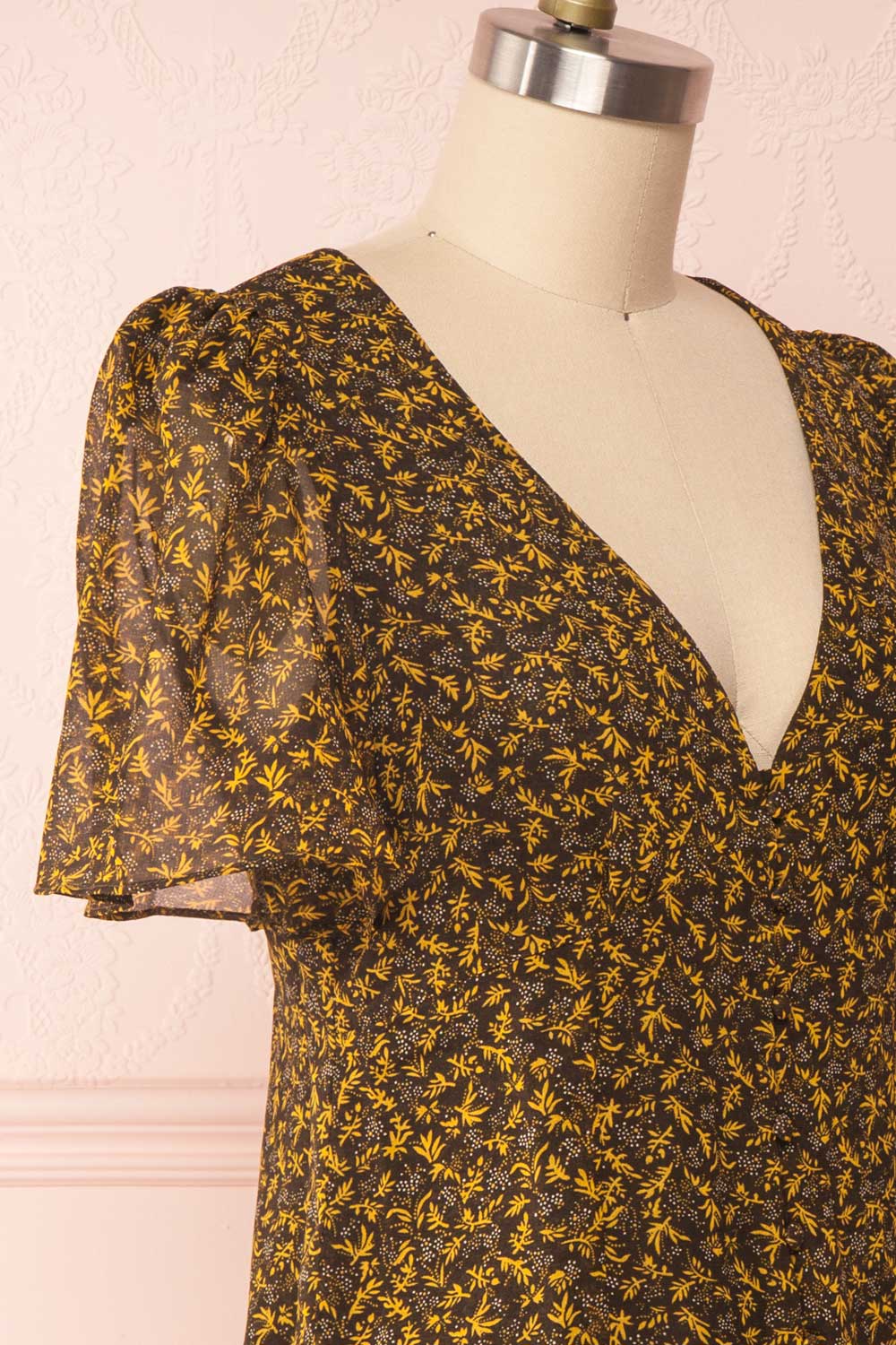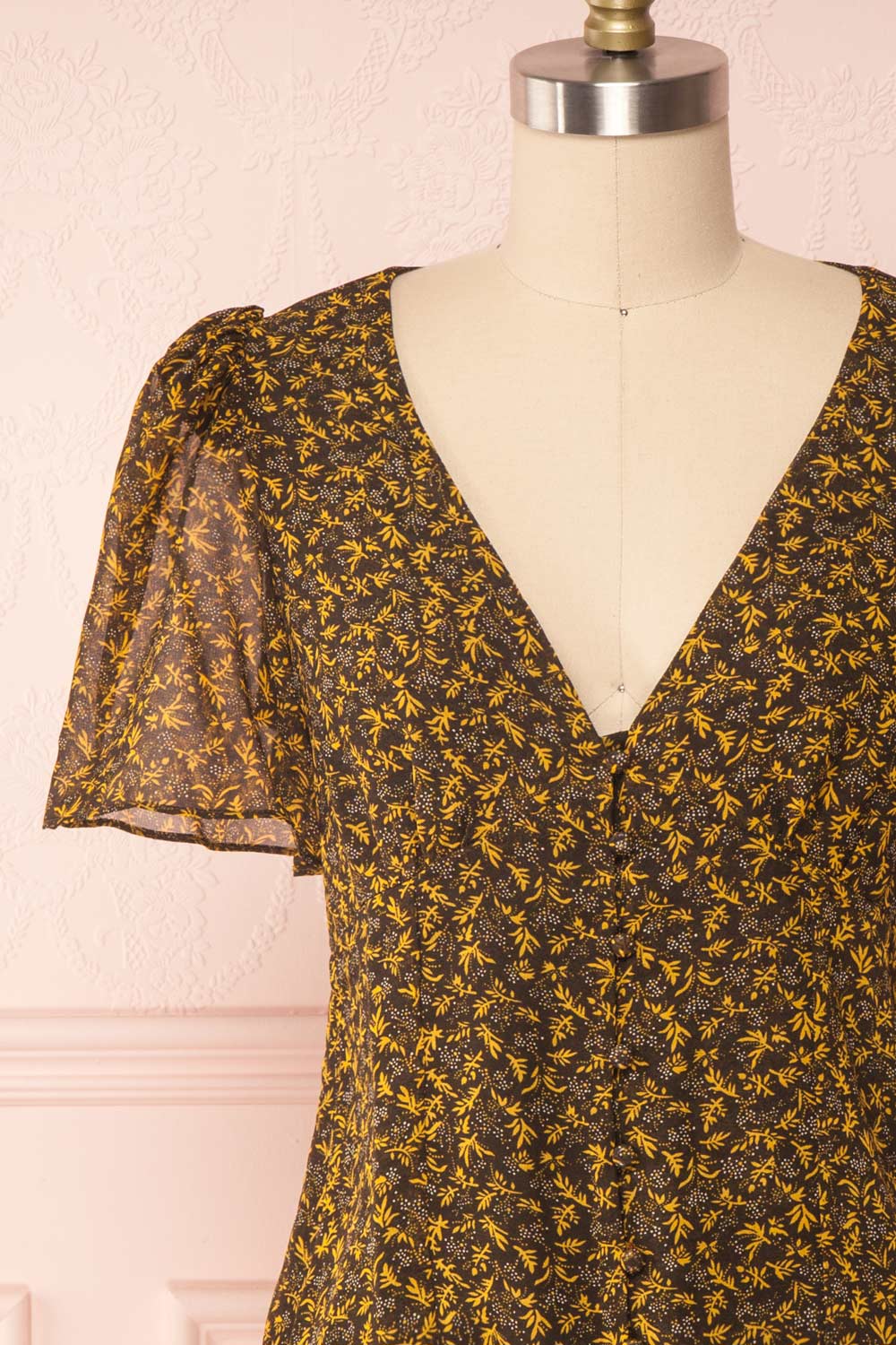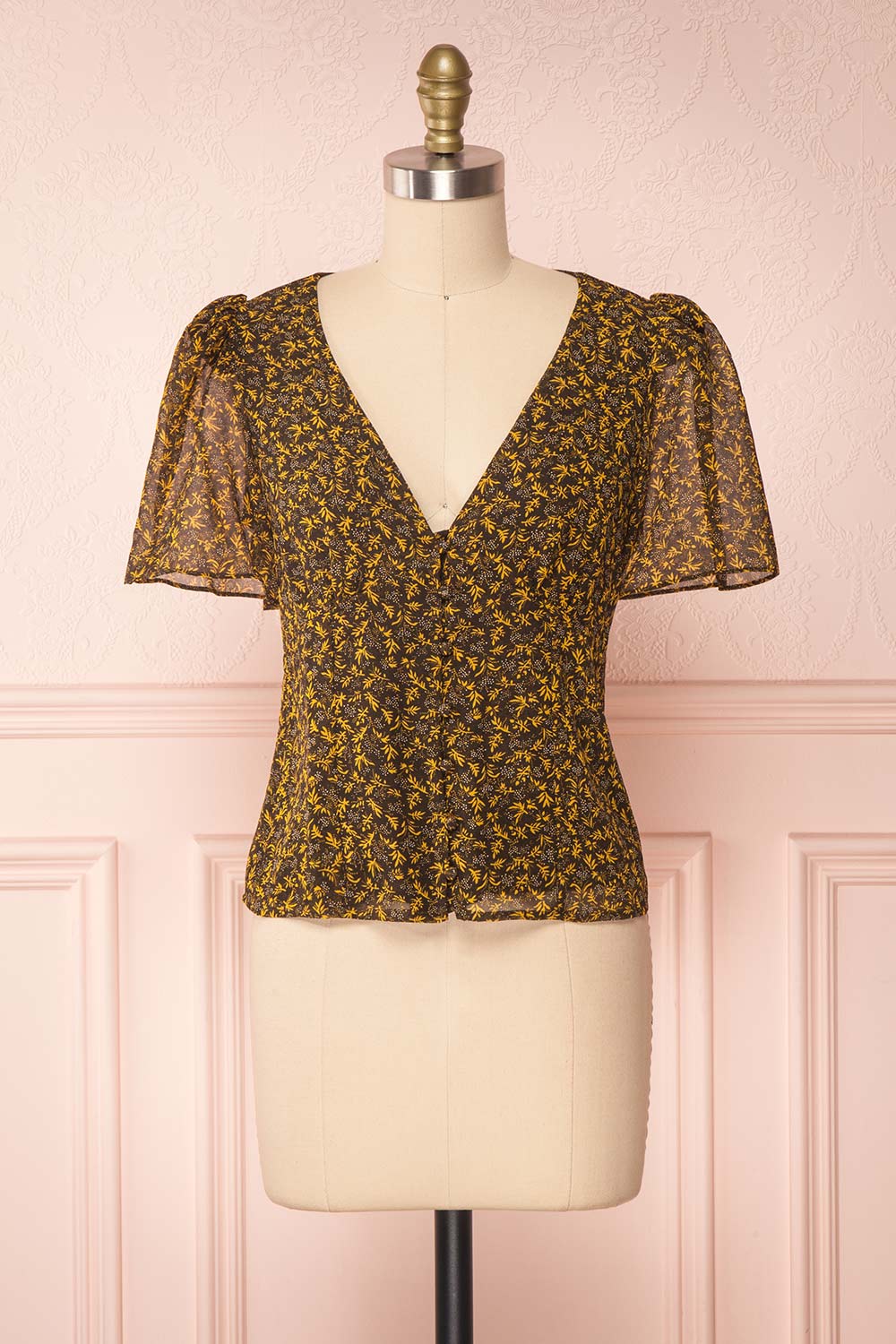 Ce joli haut écourté apportera un vent de fraîcheur à votre garde-robe! Le chiffon léger vous habillera avec confort, alors que les boutons et les manches papillons sont des éléments charmants. Agencez-le d'un pantalon ajusté et de souliers ballerines pour une tenue romantique, mais professionnelle!