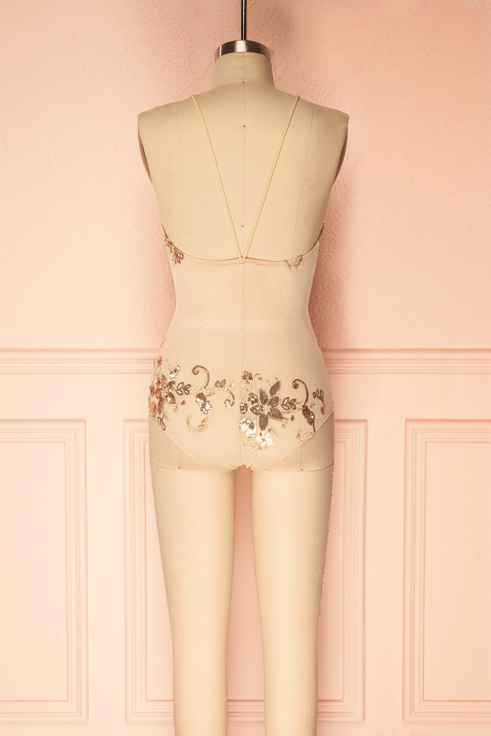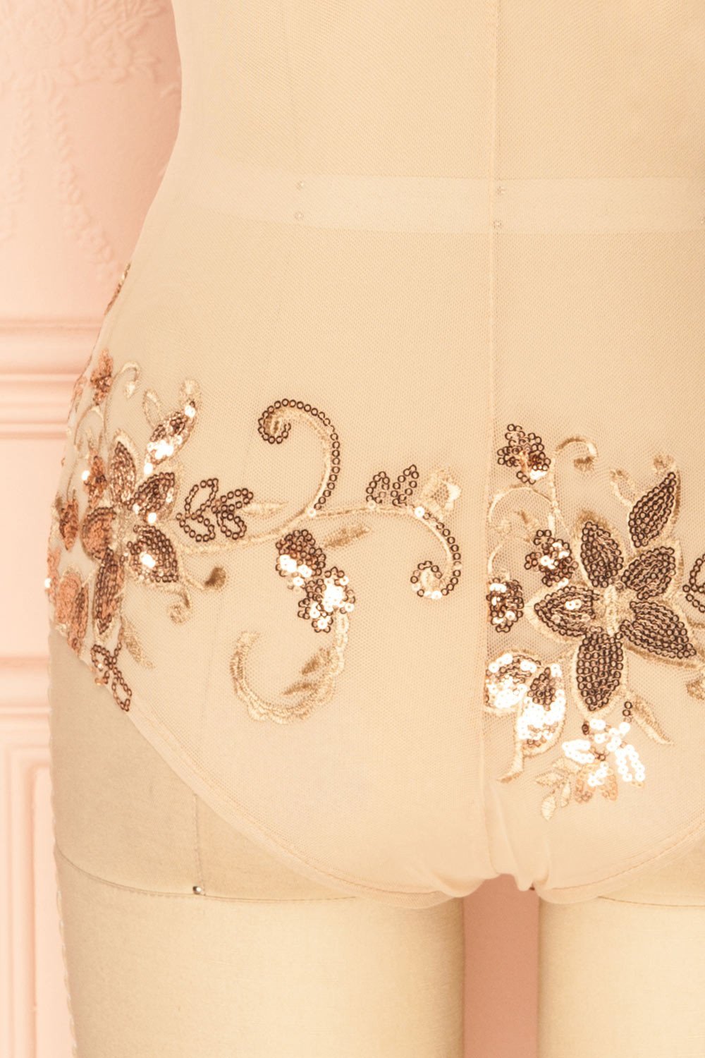 Patti | Rose Gold Sequins Mesh Bodysuit