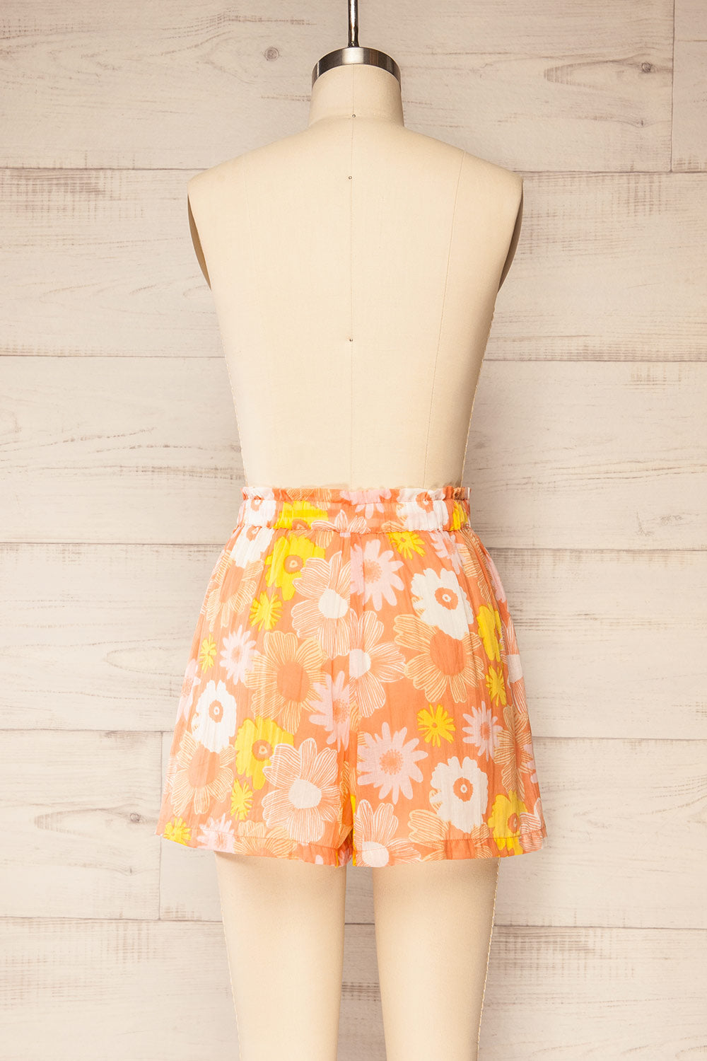Peyroutas | Short Fleuri Rose à Taille Haute