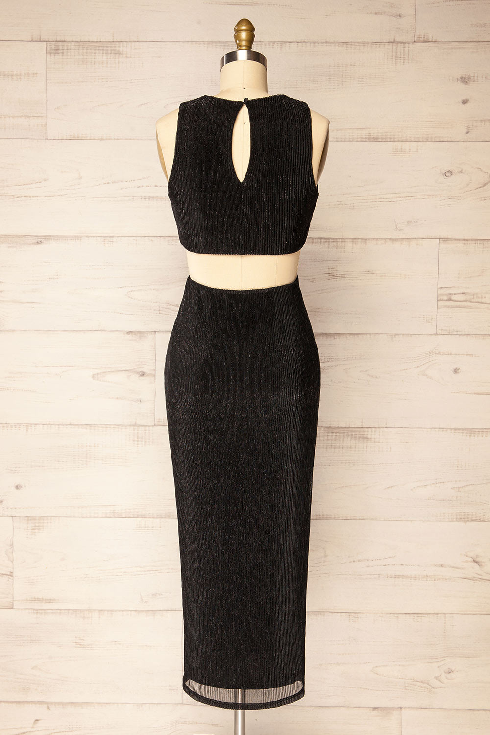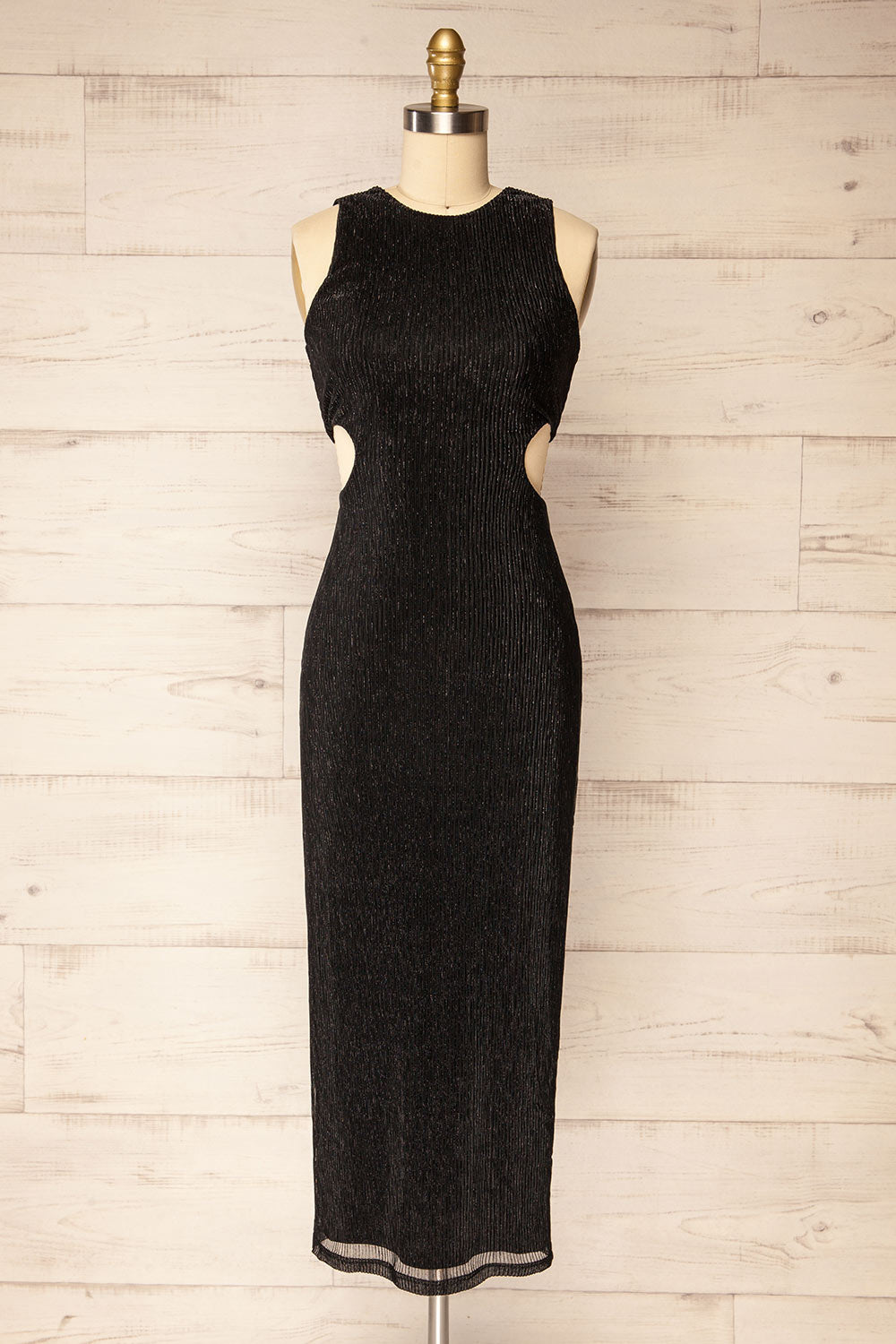 Pezenas Noir | Robe Midi à Fils Métalliques