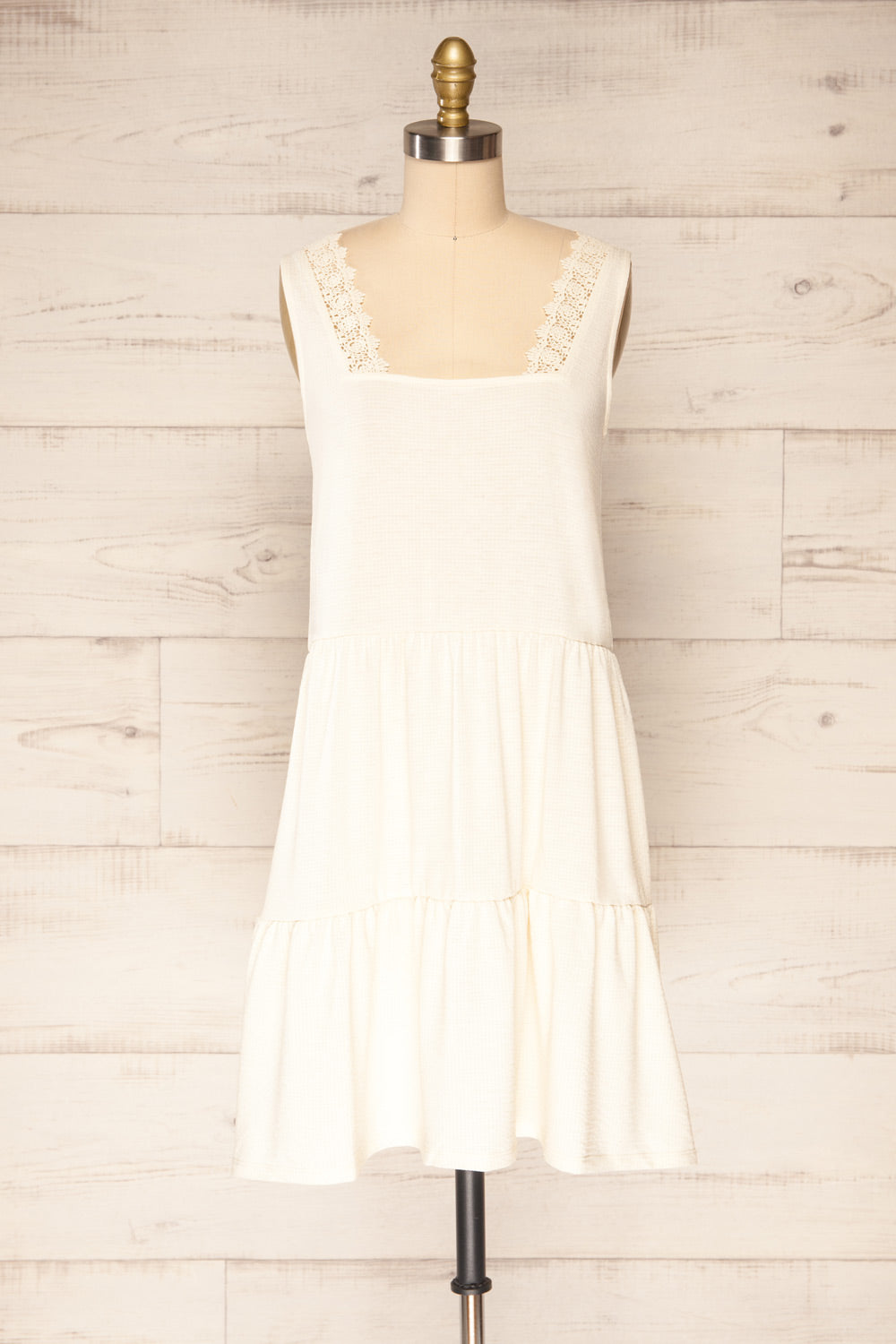 Vous serez tout simplement adorable vêtue de cette charmante robe courte étagée! Son doux tissu léger sera agréable sur votre peau et sa coupe ligne-A complimentera votre silhouette à merveille. Vous adorerez les détails en dentelle placés sur ses bretelles larges, de même que son col carré. Agencez-la à votre paire de sandales préférée et un sac en bandoulière pour une tenue estivale des plus tendances.
