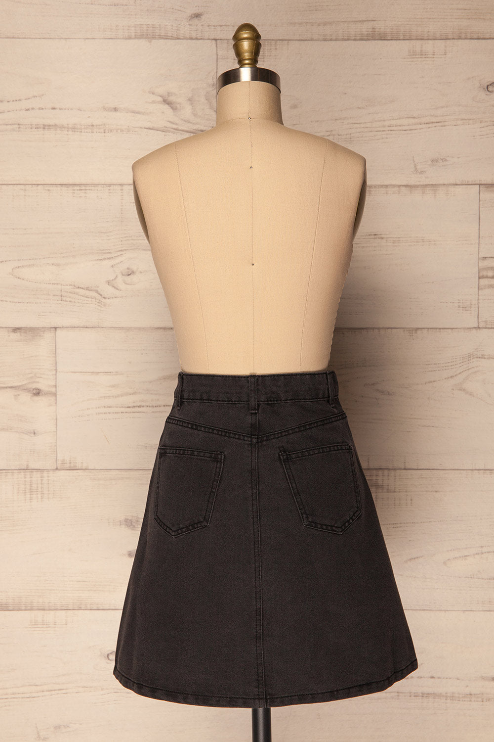 This little buttoned skirt is the height of 1990s style! The solid denim material is a timeless and comfortable element. The button-down front makes it easy to slip on, as well as being a classic detail. Use the belt loops to explore your own unique style!