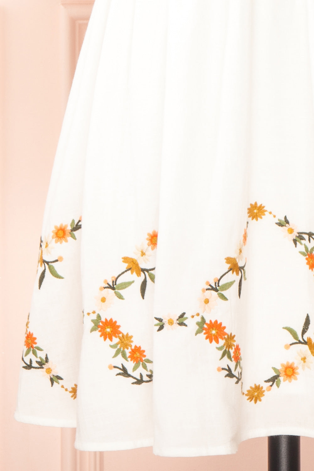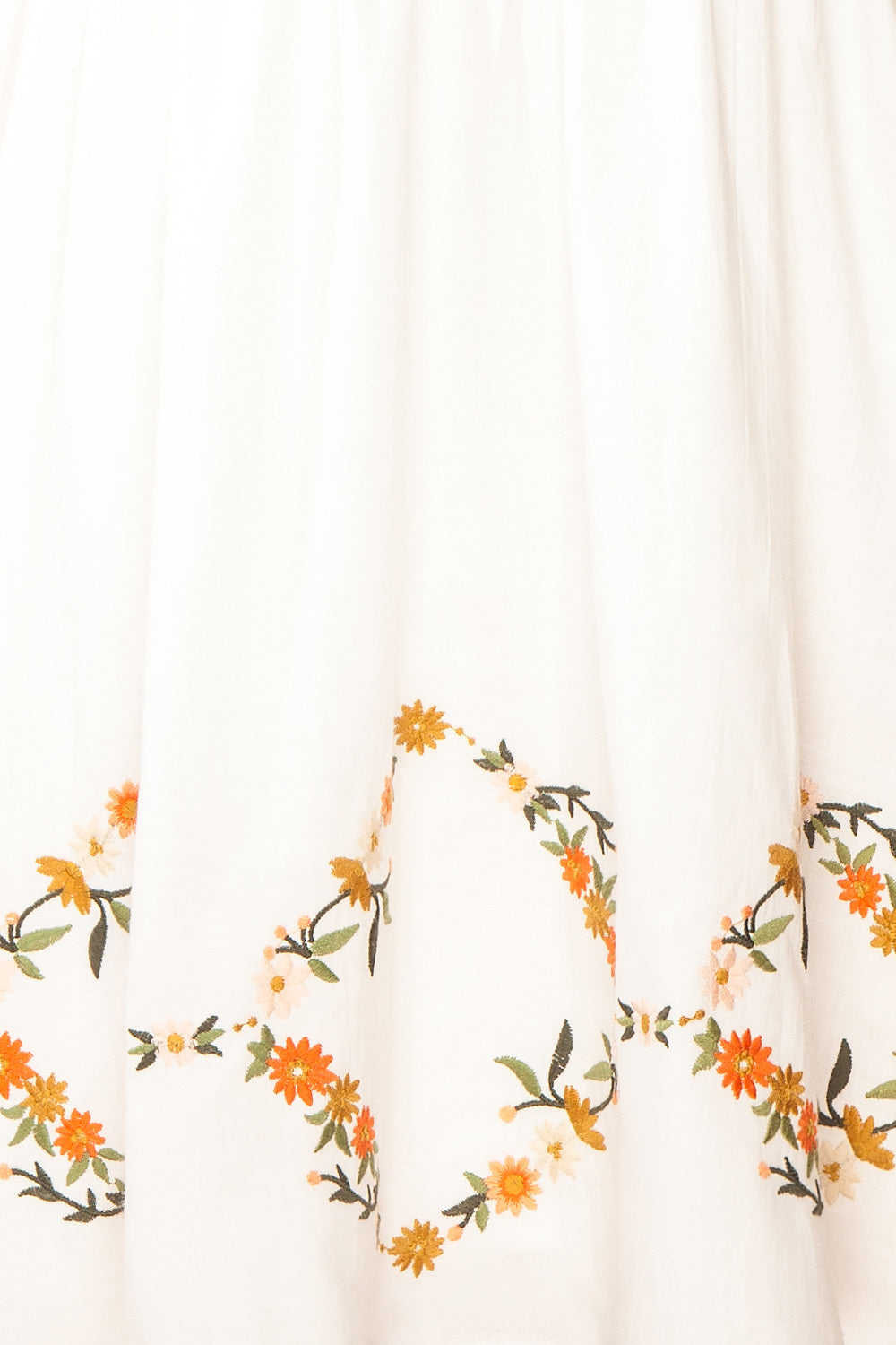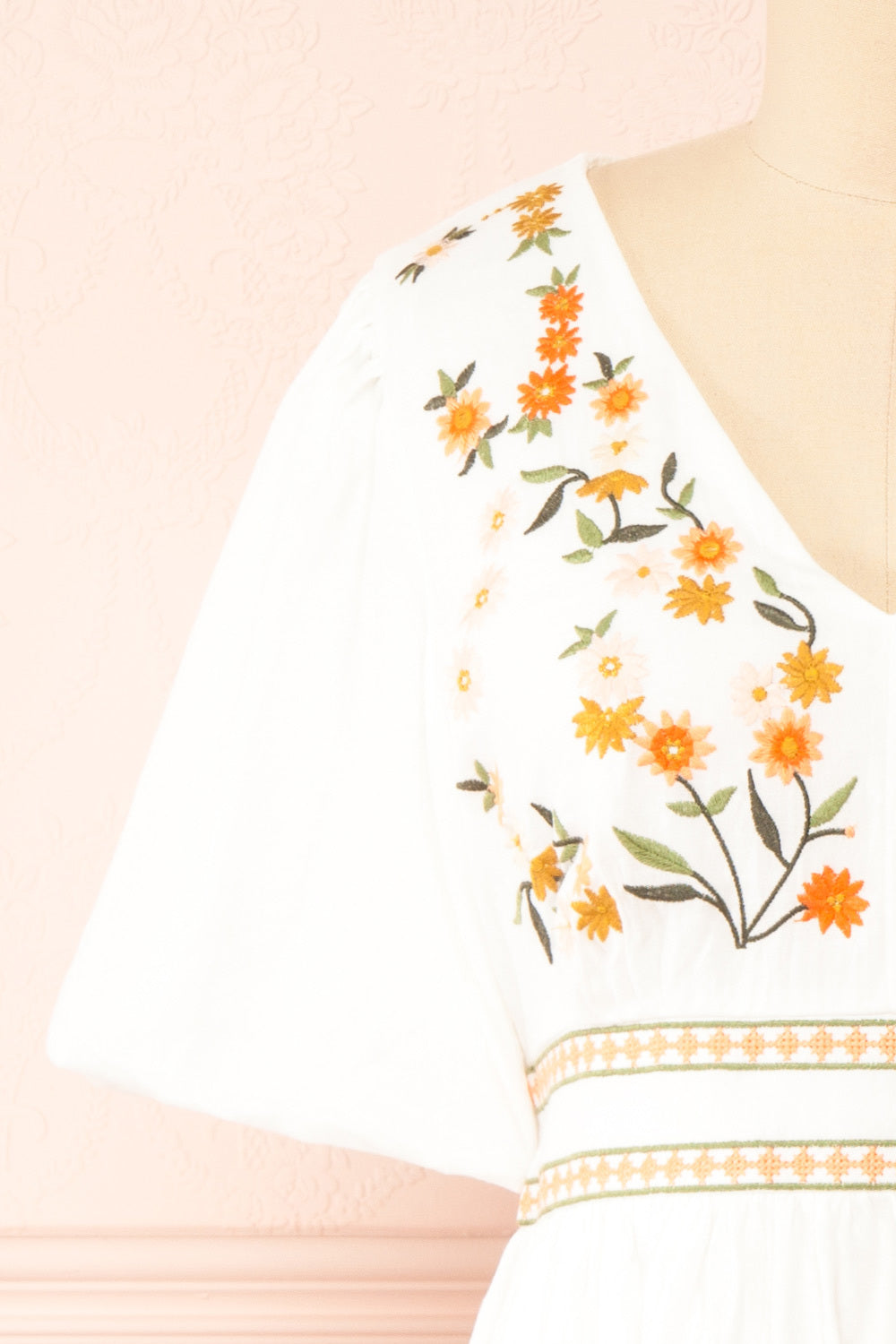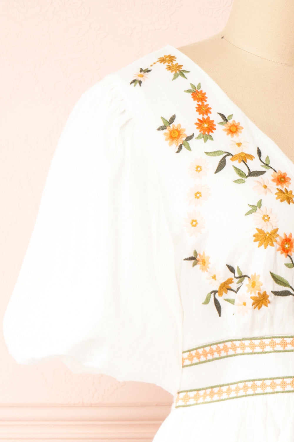 La liberté de cette robe inspirera des promenades au soleil! Sa coupe courte et fluide se superpose à une doublure qui vous enveloppera confortablement, tandis que le corsage orné de broderies florales colorées ajoute une touche printanière à votre tenue. Ses manches courtes bouffantes la rehausseront d'élégance tandis que son décolleté profond ajoutera une touche romantique à votre tenue. Grâce à sa fermeture éclair invisible sur le côté elle sera facile à enfiler!