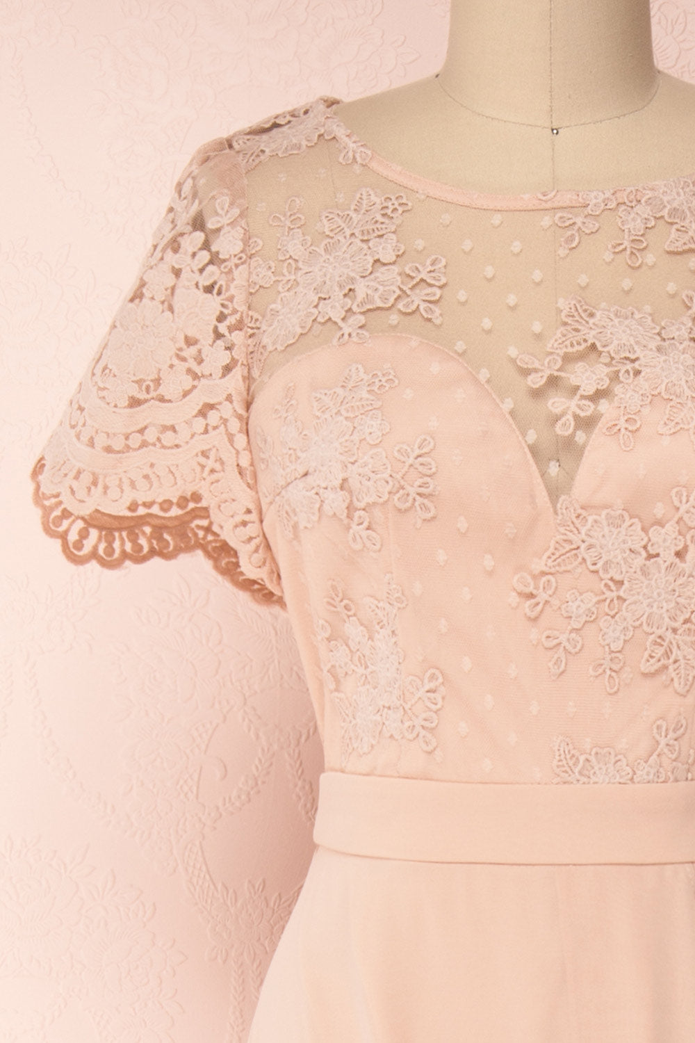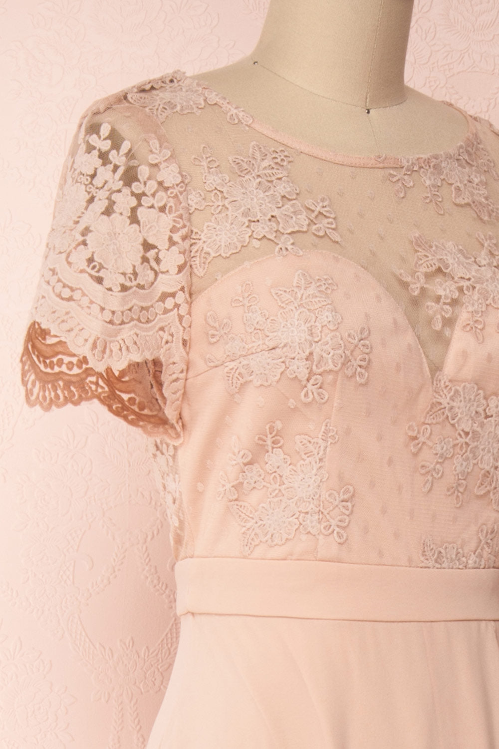 Rakel Rose Pâle | Robe Maxi à Manches Courtes