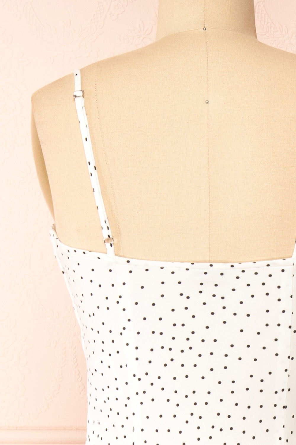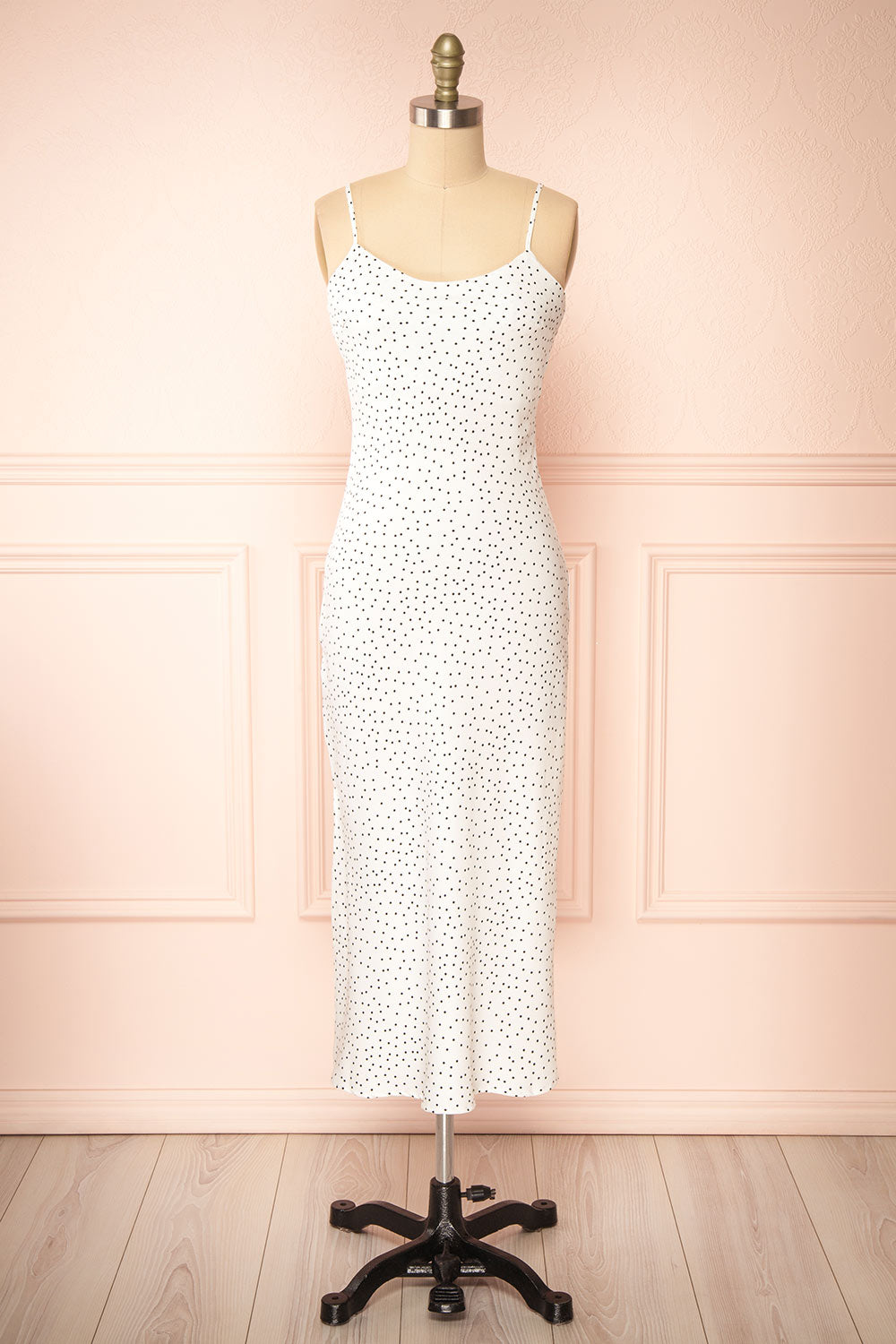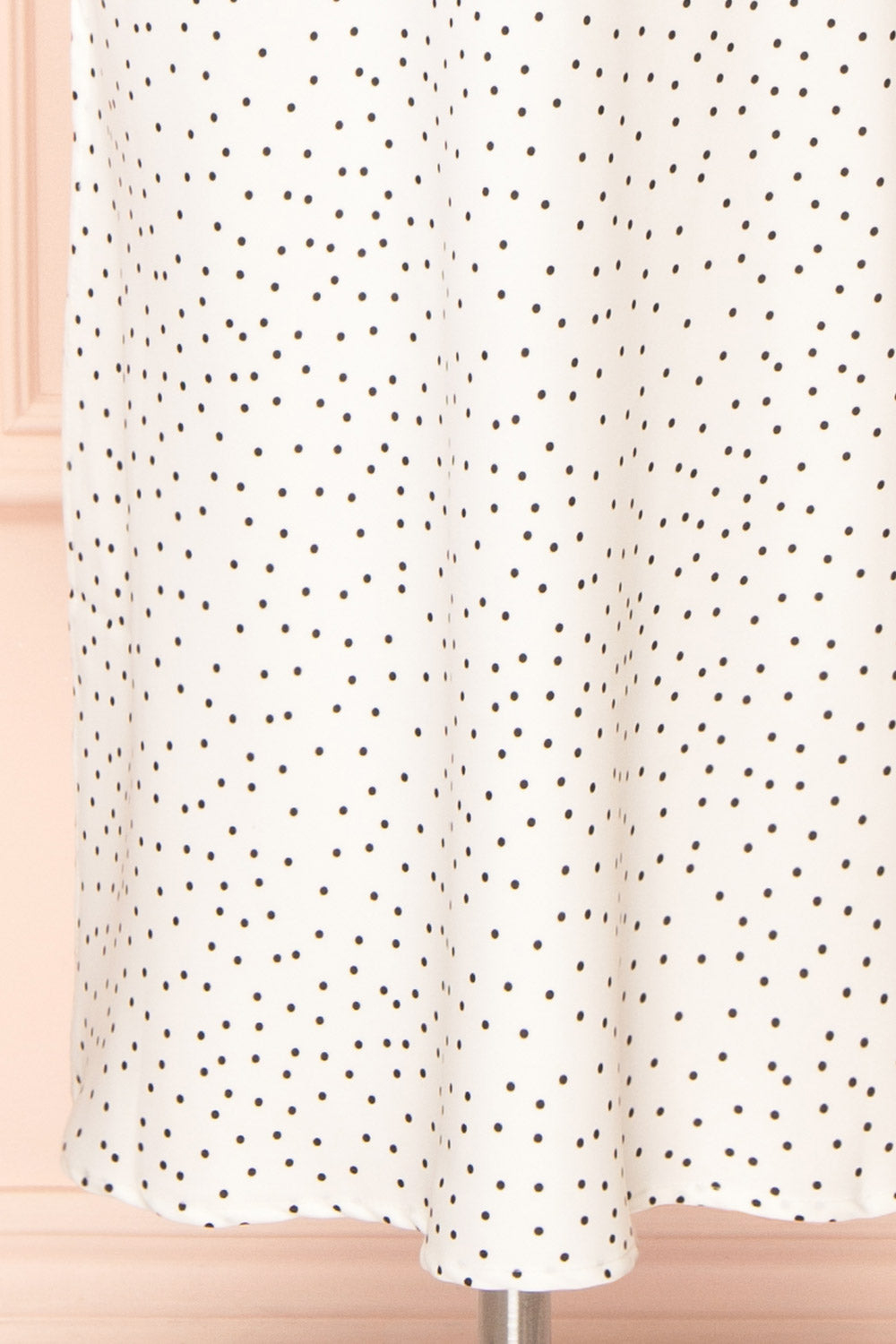 Rebby Blanc à Pois | Robe Midi Ajustée Soyeuse