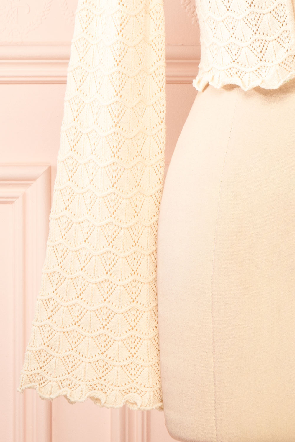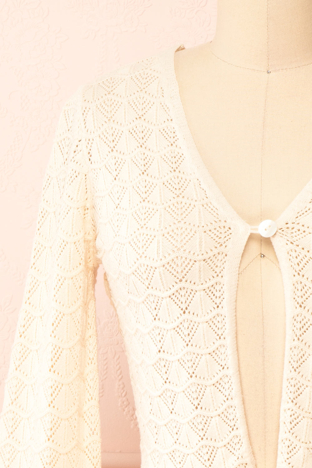 Vous aurez l'air tout simplement adorable dans ce haut en crochet! Vous tomberez sous le charme de son délicat tissu crocheté qui dévoilera votre peau avec grâce tandis que ses manches longues couvriront vos bras avec légèreté. Vous aimerez son bouton nacré, un détail délicat. Associez-le à une jupe longue fluide et à un joli haut court pour un ensemble simple, mais charmant.