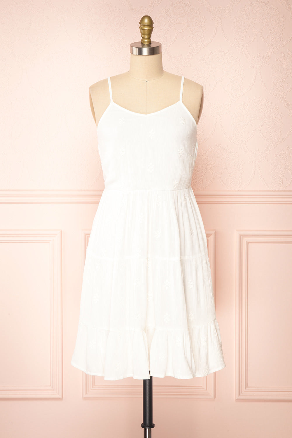 Reeta Blanc | Robe Courte Étagée à Bretelles Fines
