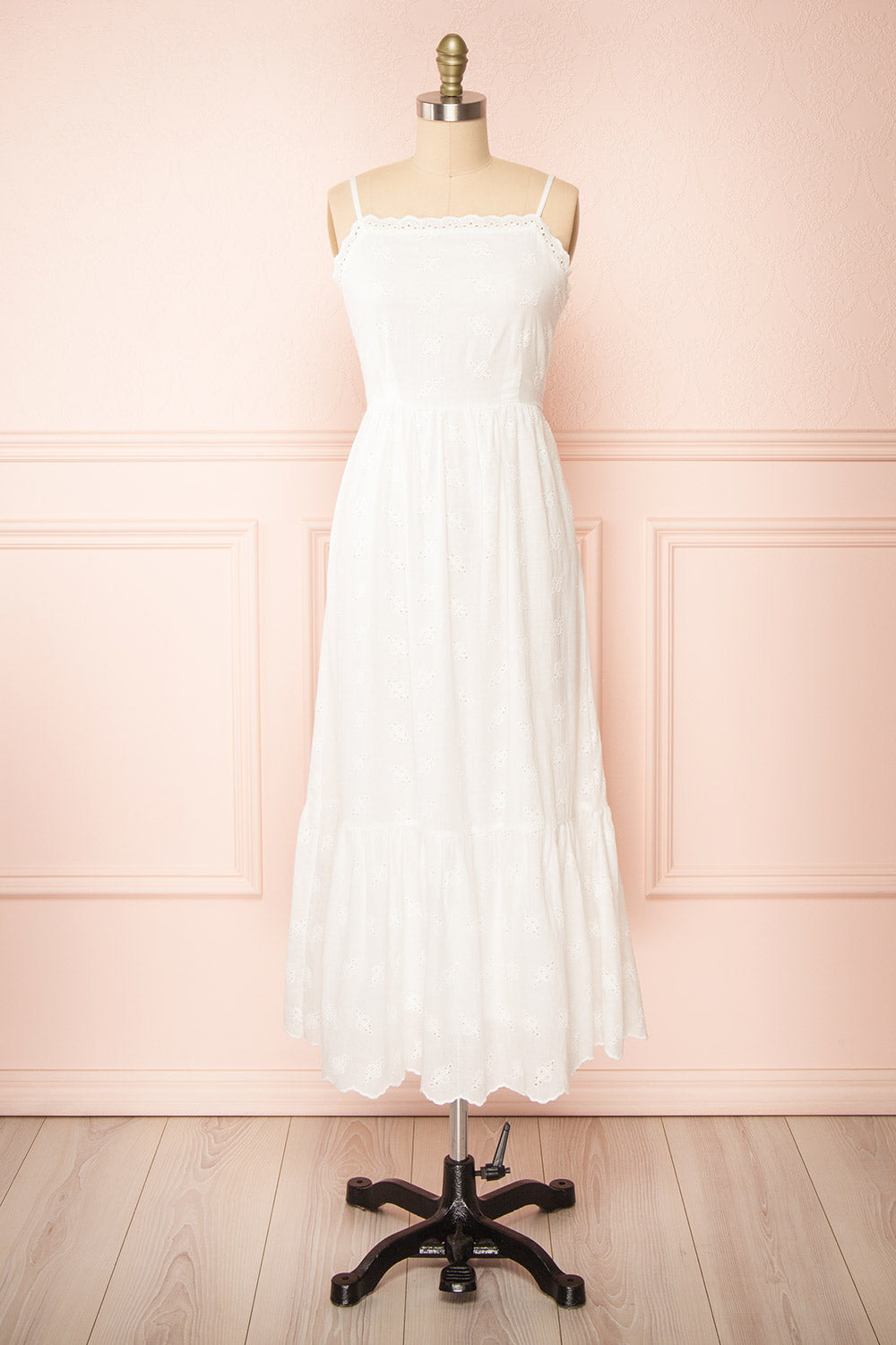 Vous serez ravie de cette délicate robe midi à coupe ligne A! Le tissu ajouré en coton sera léger et doux contre votre peau. La doublure lisse vous couvrira, tandis que les fines bretelles ajustables assureront un port parfait, ce qui en fera l'une de vos pièces préférées. La fermeture éclair invisible sur le côté de la jupe à volants vous permettra de l'enfiler facilement et de bouger avec aise. Peu importe l'occasion, votre charme sera indéniable!