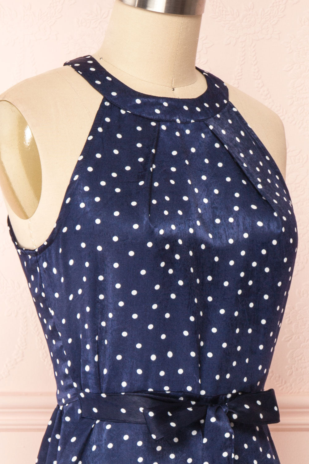 À la fois ravissante et amusante, vous serez tout simplement charmée par cette robe midi! Son tissu léger et satiné complimenté par ses petits pois sera agréable sur votre peau. Son col licou apportera un look tendance alors que la boucler à nouer au dos ajoutera une touche adorable à votre tenue printanière. Vous pourrez facilement l'enfiler grâce à la fermeture éclair placée au dos.