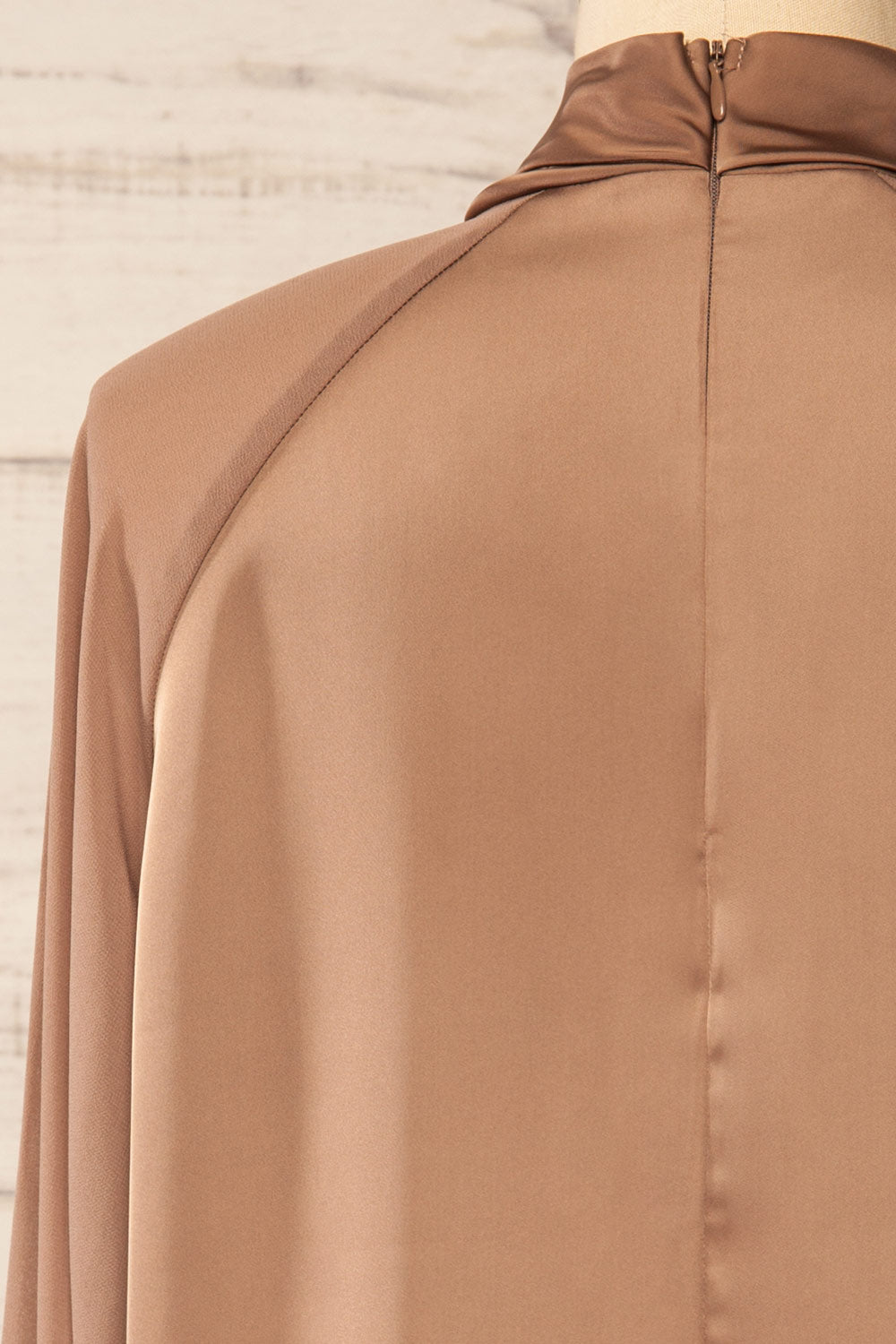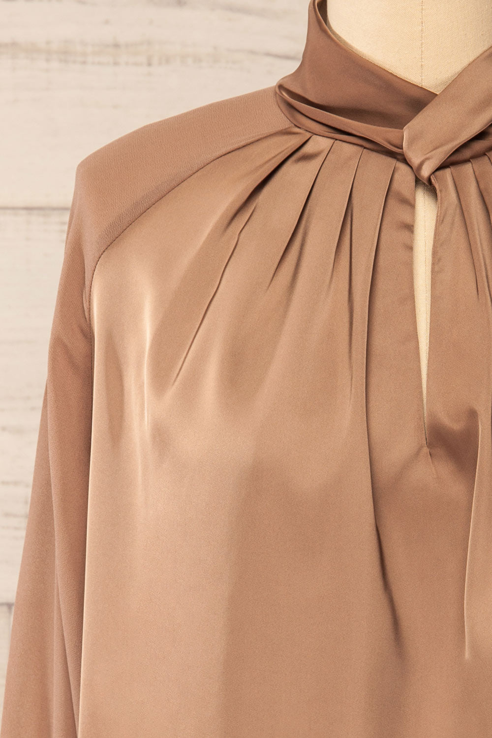 Rumoi Brown | Silky Blouse w/ Sheer Sleeves