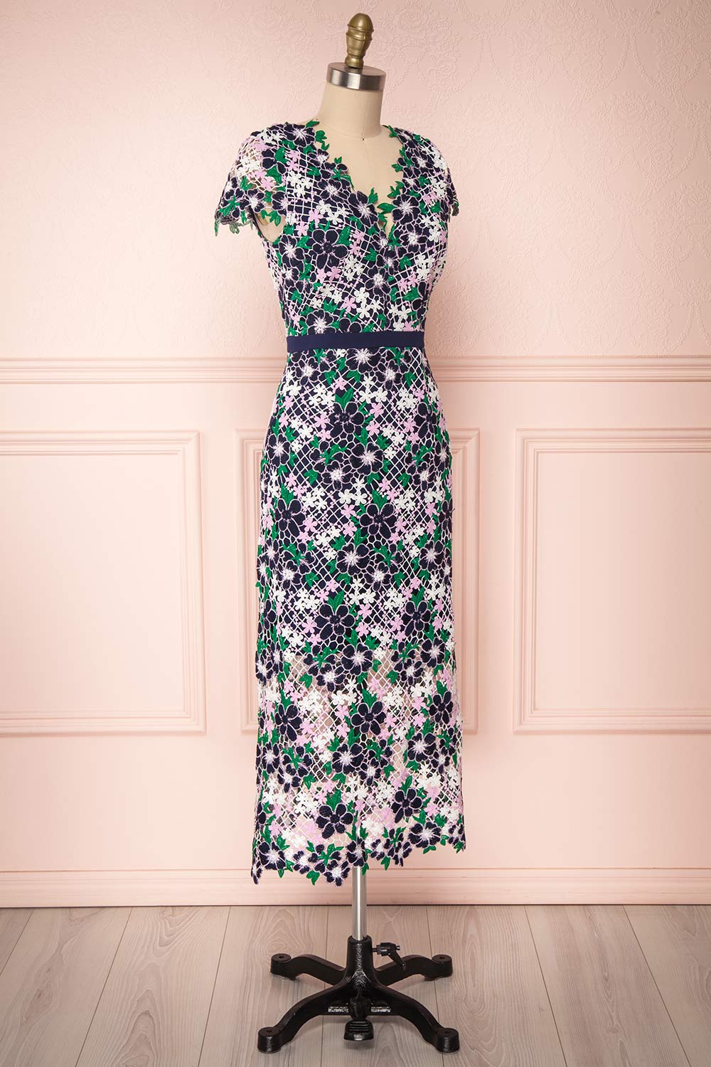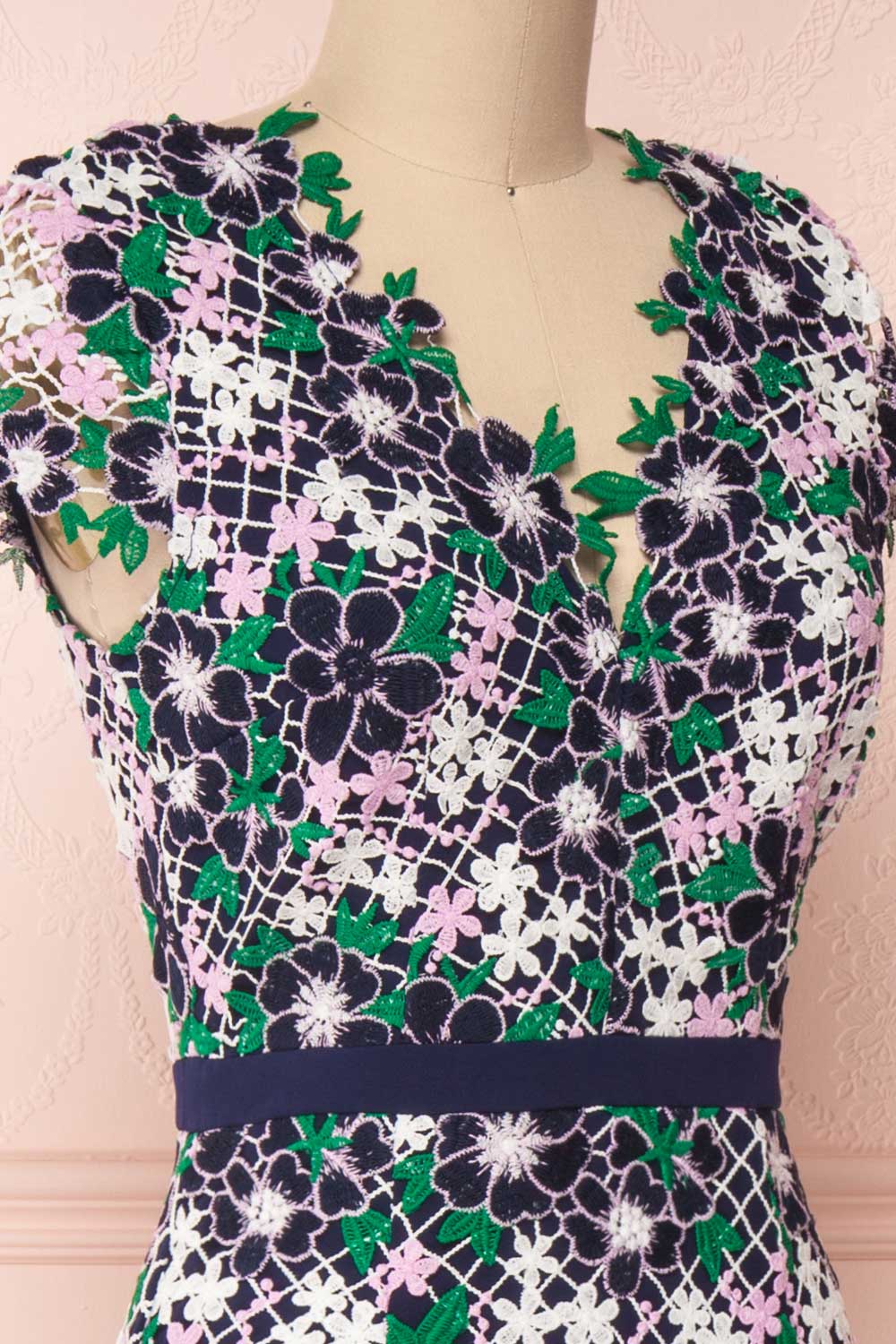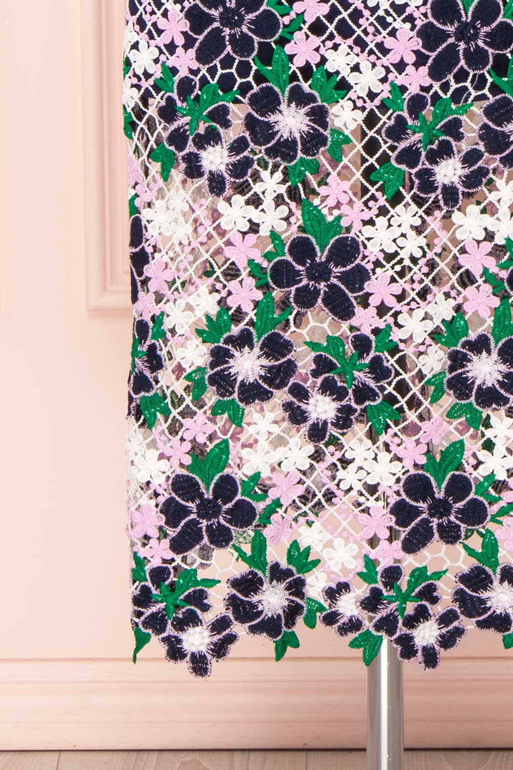 This enchanting floral dress has a breathtaking presence! Its long fitted cut overlays a short, opaque lining. An invisible back zipper will allow you to put on it with ease. Delicate, romantic, and elegant, this dress will showcase your figure as well as your sense of style!