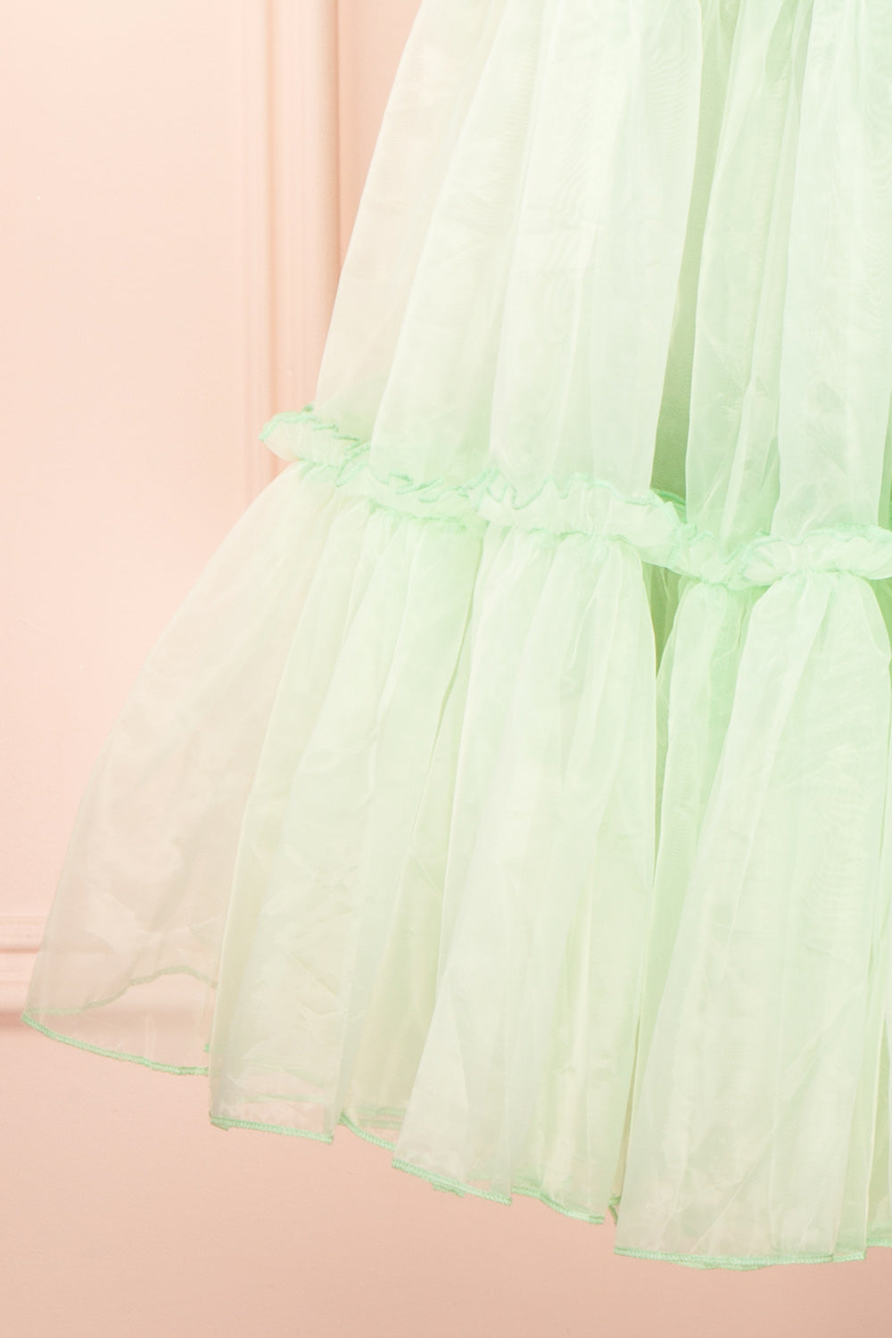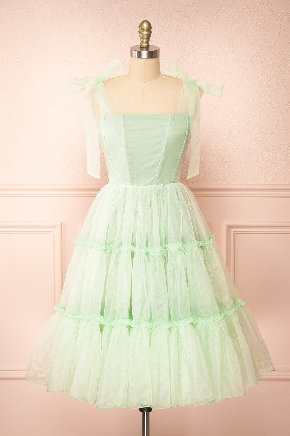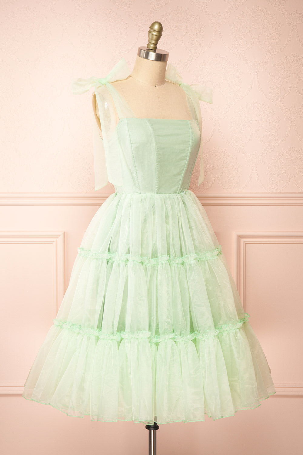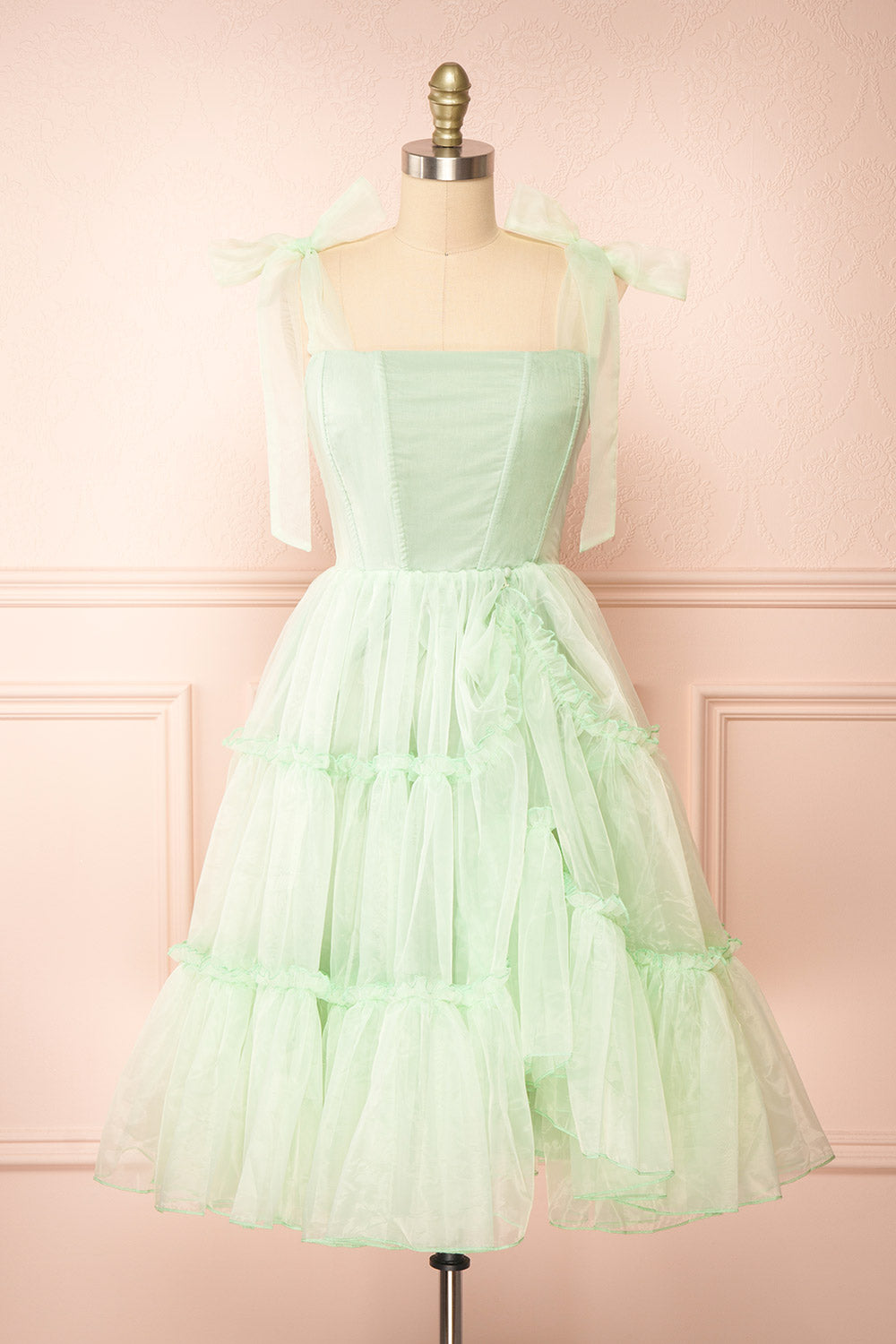 Cette jolie robe par Wild Rose & Sparrow est faite pour tournoyer! Inspirée par les jupons en tulle, sa jupe est composée de trois étages de tulle volumineuse. Vous tomberez en amour avec les bretelles à noeuds qui peuvent s'attacher pour former une adorable boucle. Le dos style corset ainsi que les baleines souligneront merveilleusement votre silhouette, vous assurant ainsi une tenue parfaitement stylée pour toutes vos occasions.