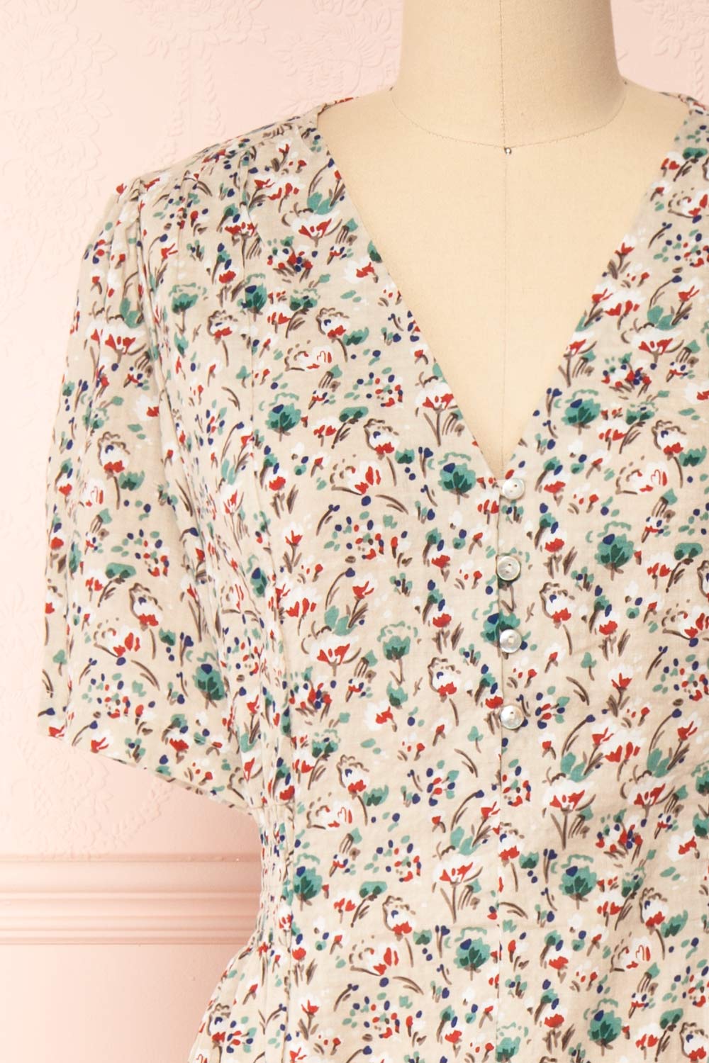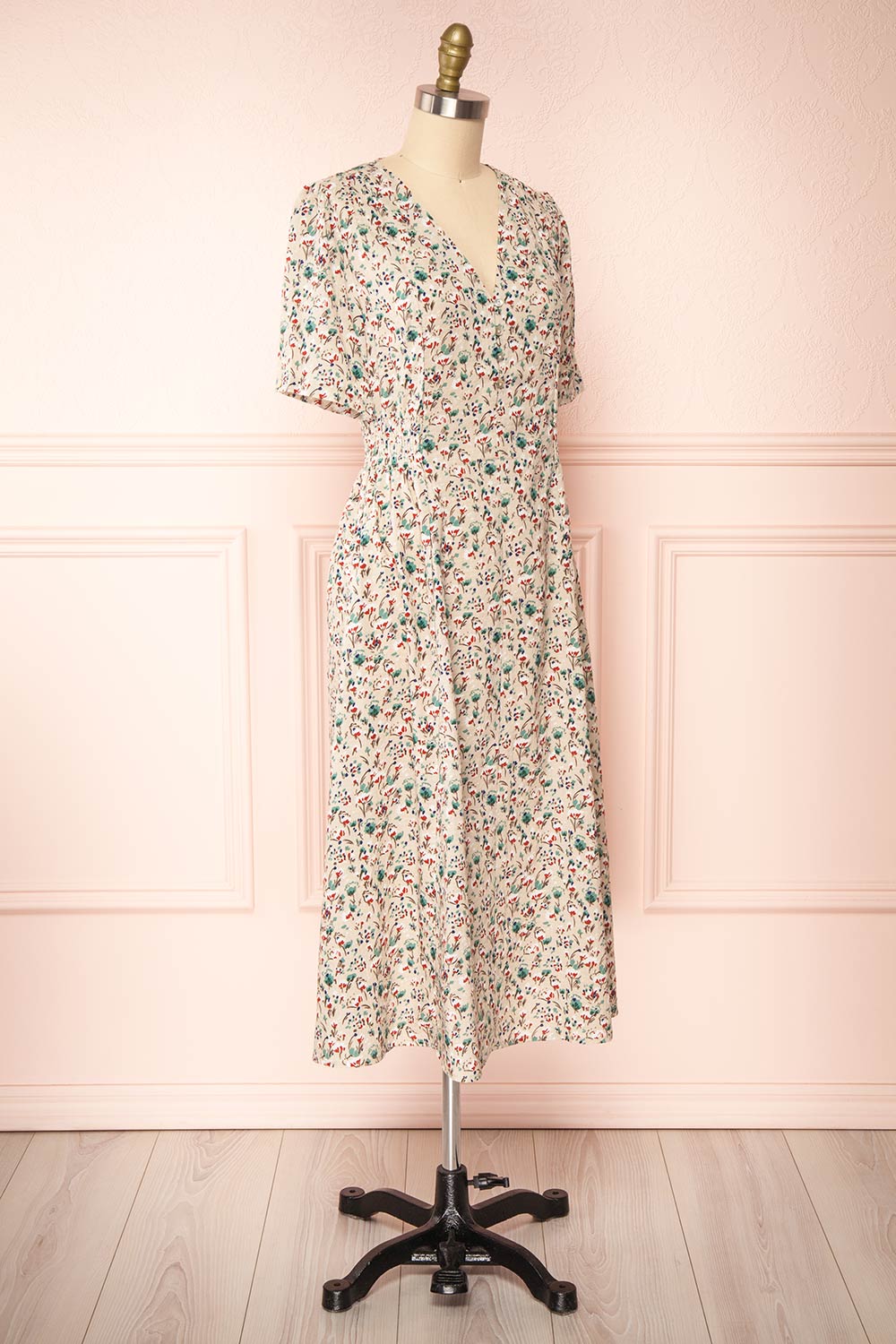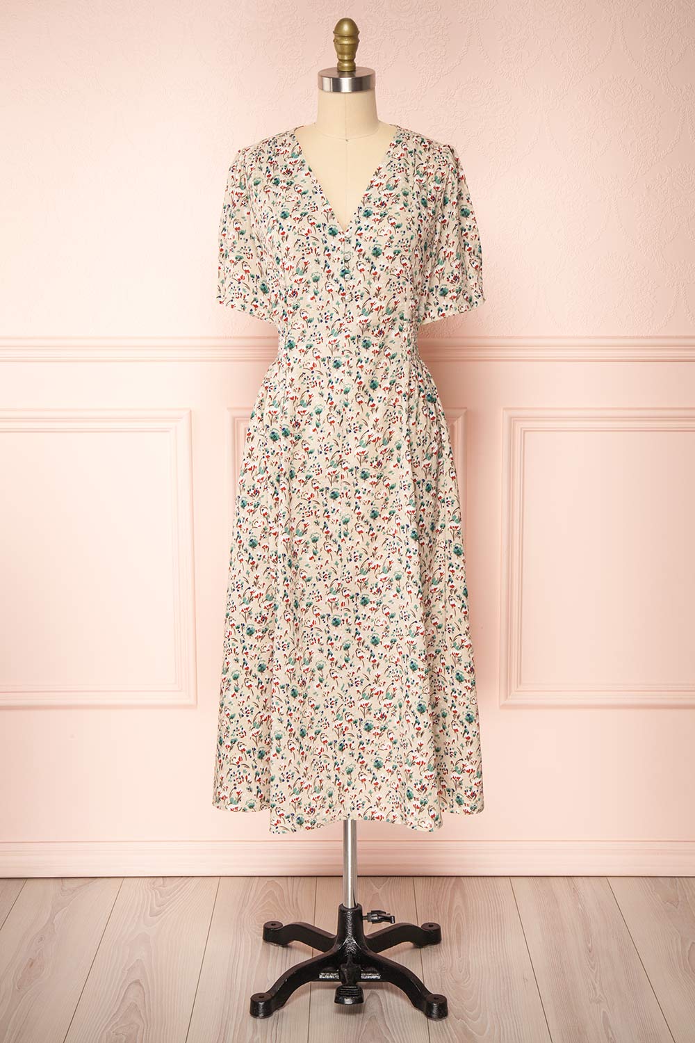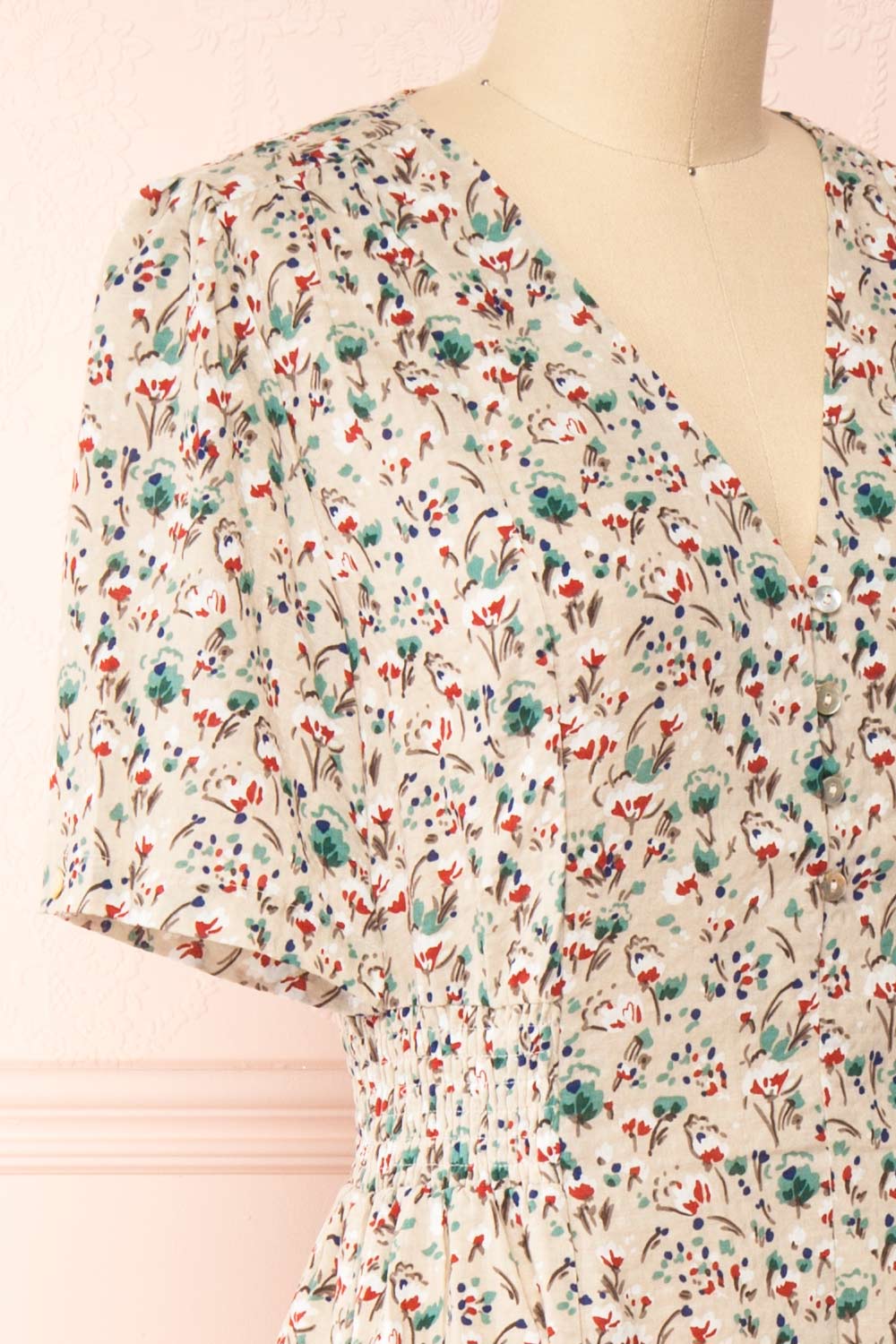 Profitez des journées chaudes d'été avec style grâce à cette charmante robe midi fleurie! Sa coupe ligne-A complimentera votre silhouette à merveille, alors que ses détails ruchés sur chaque côté de la taille accentueront vos courbes. Vous adorerez comment son col en v dévoile votre peau, de même que la touche structurée ajoutée par ses manches courtes bouffantes. Agencez-la à un sac bandoulière et votre paire de sandales préférées pour une tenue estivale tout simplement adorable.
