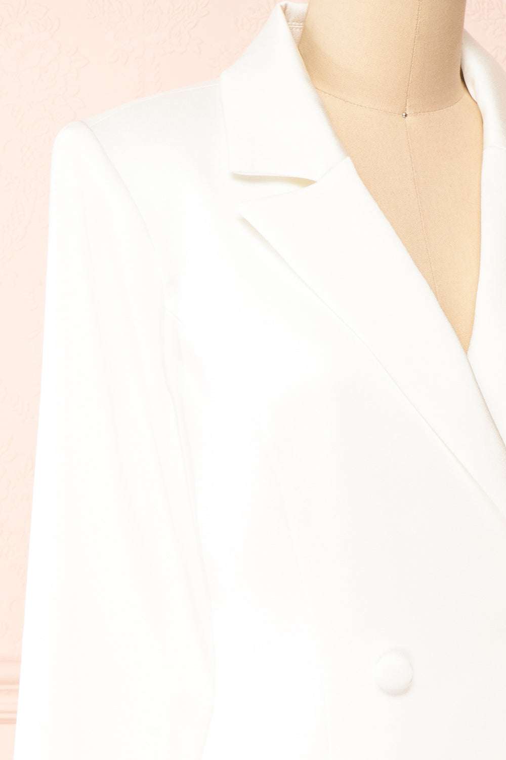 Cette robe veston ivoire sera parfaite en toute occasion! D'une élégance simple et minimaliste, vous aimerez son tissu satiné, ses revers crantés, ses épaulettes, ses larges boutons et son double boutonnage qui lui donne un charme classique. Associez-la à de longues boucles d'oreilles pour une allure sophistiquée!