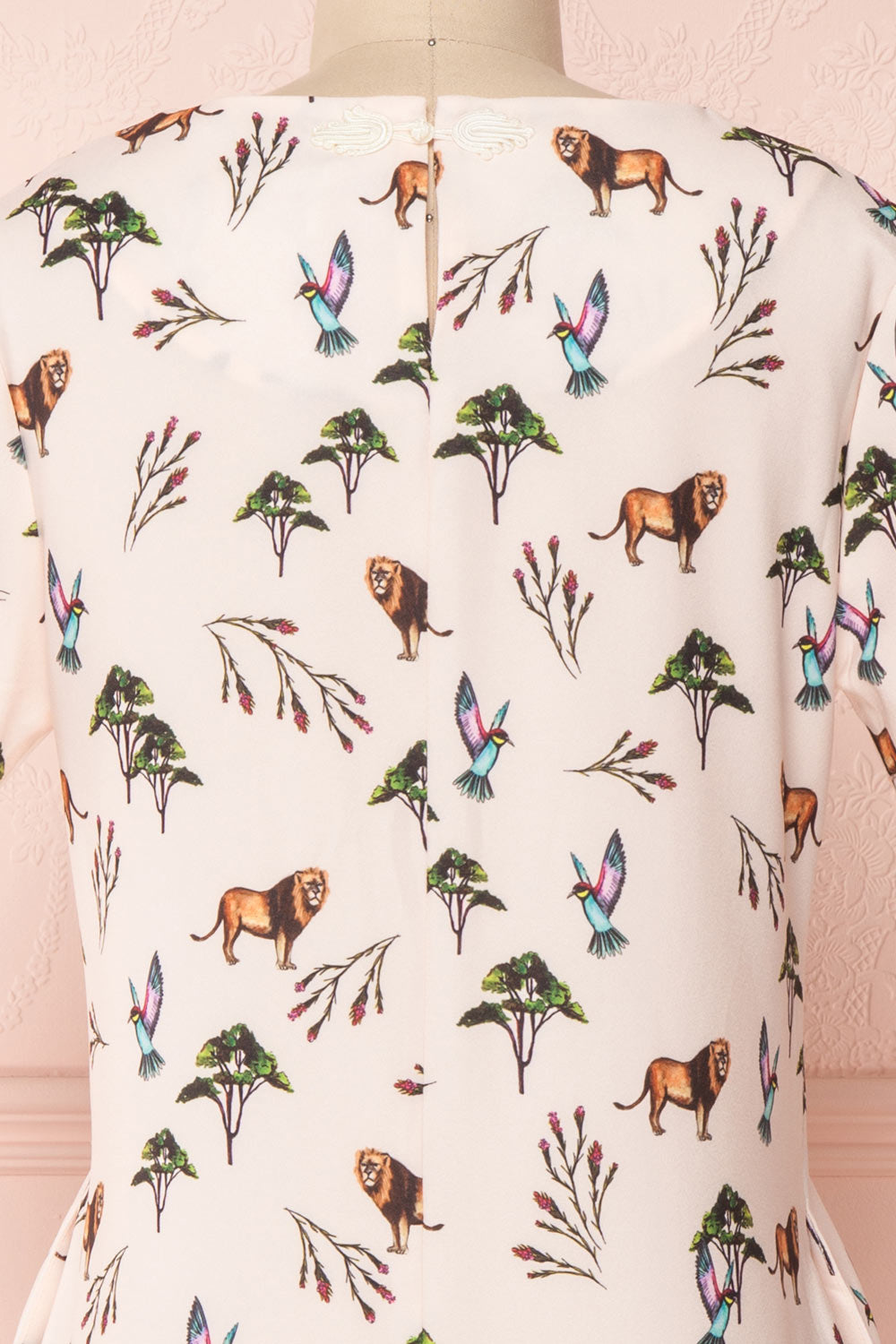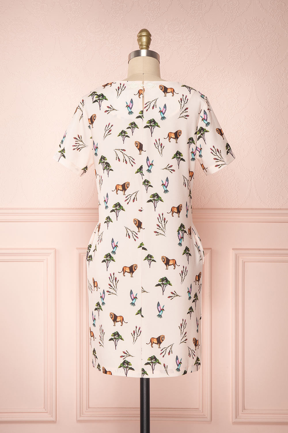 Embody the splendour of the animal kingdom with this summer dress! Its cut will highlight your silhouette while being comfortable, and its lightweight fabric will be perfect under the sun's rays. An elegant closure at the nape of the neck allows you to put on it with ease. The two pockets will also prove practical!