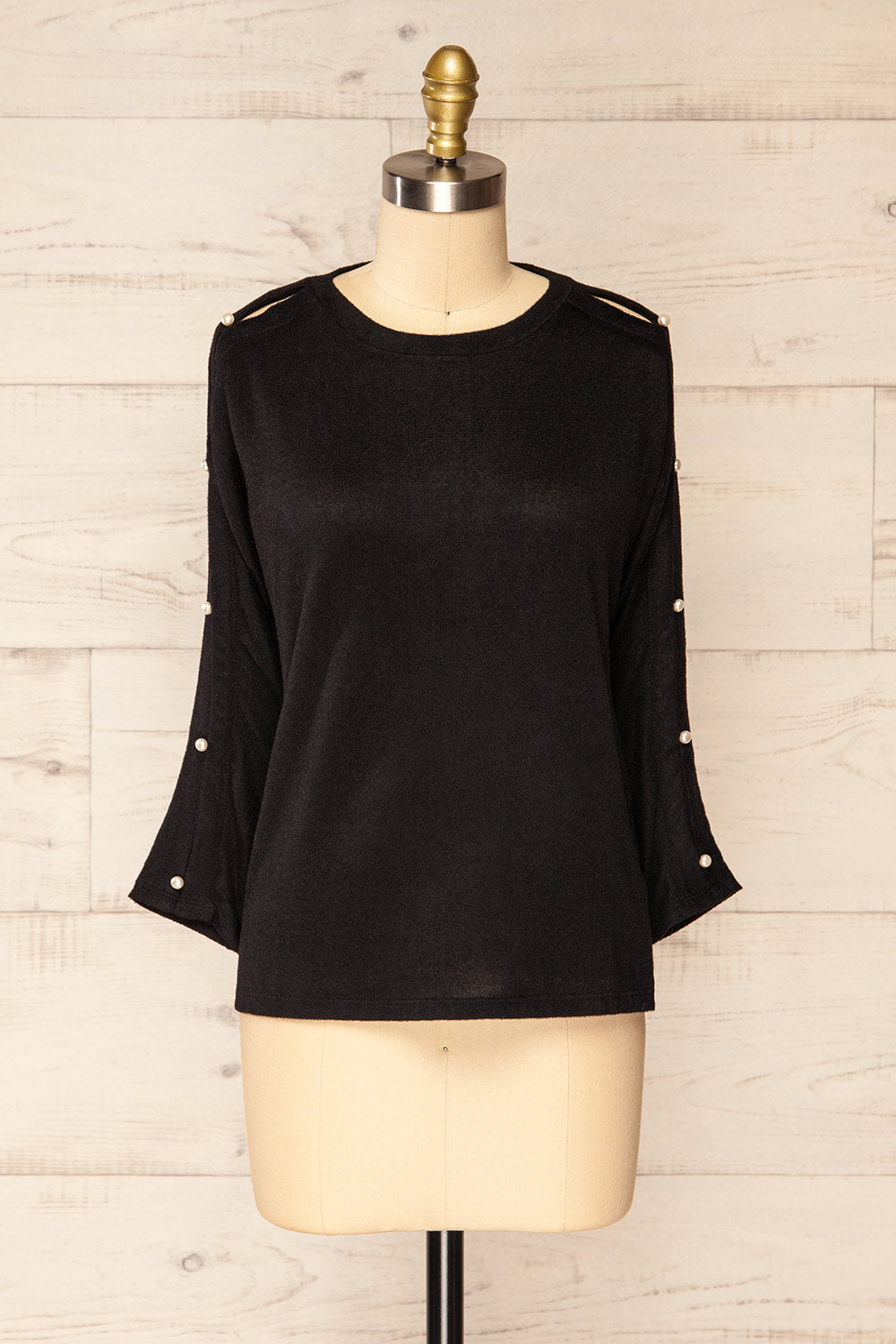 Tampa Noir | Chandail avec Boutons en Perles sur les Manches