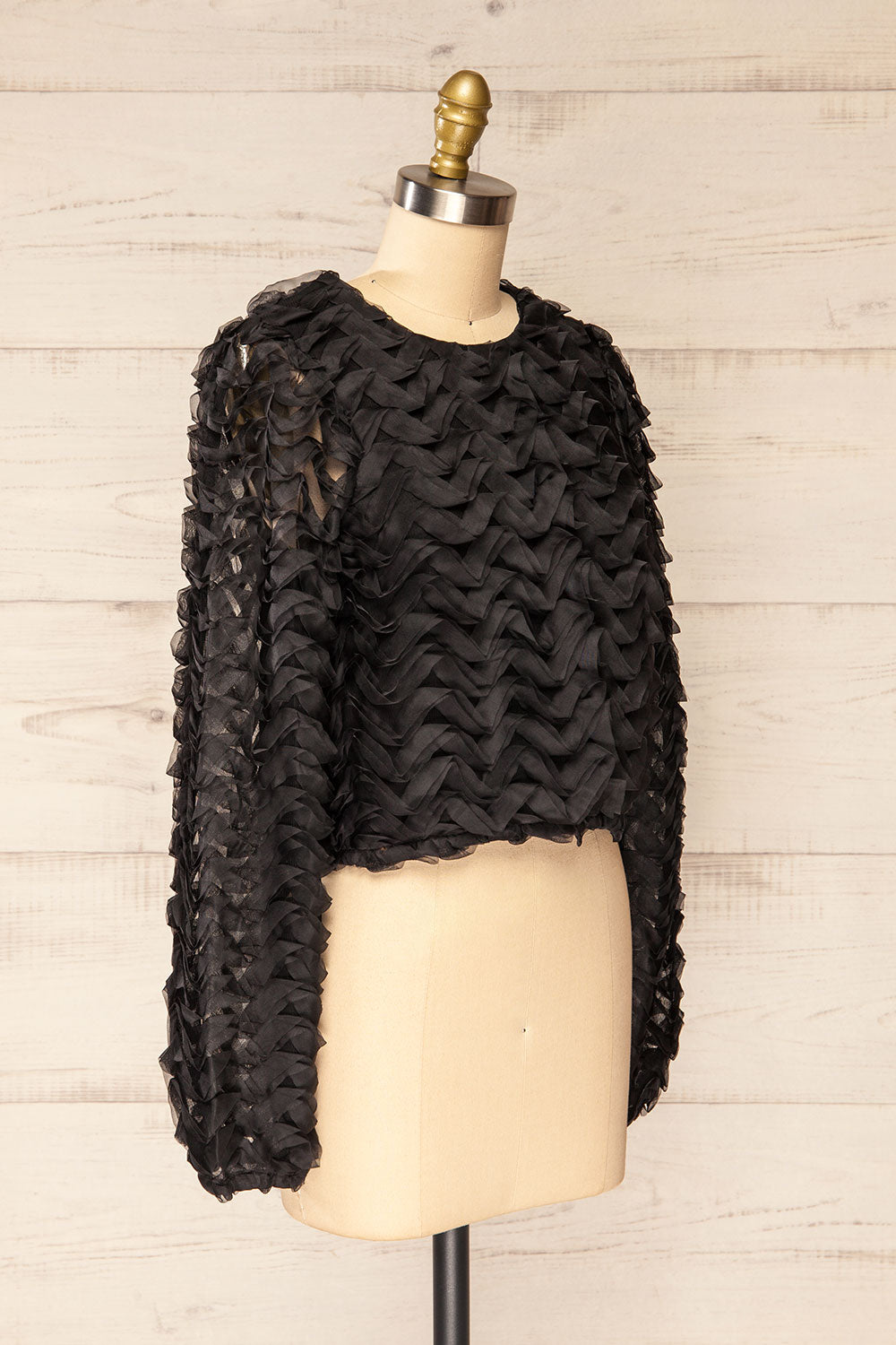 Tamworth | Haut Écourté en Tulle Noir à Manches Longues