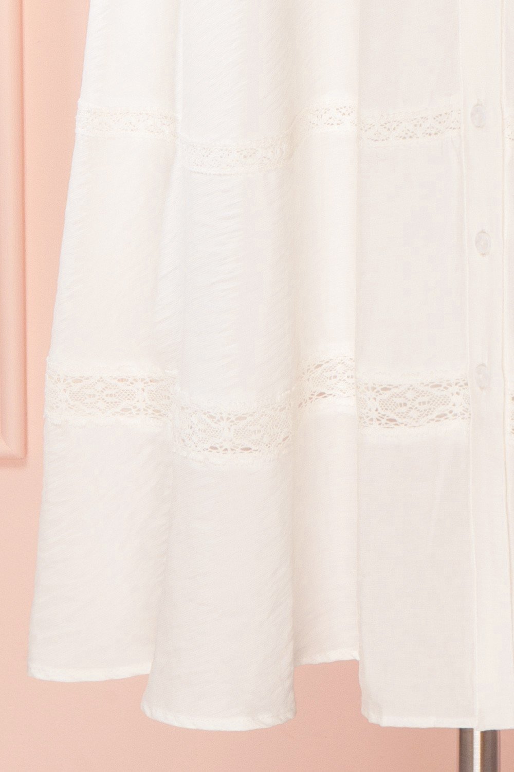Discover the romance of days gone by in this delightful dress! Inspired by the Victorian era, this dress features lace, embroidery, and cut-outs for a blend of textures. The loose cut can be cinched in at the waist thanks to the double drawstring. Buttons down the front make it easy to slip on and can change the style from conservative to casual and flirty. Long and flowing, it is a dream to wear. Pair it with a flower crown for a bohemian look!