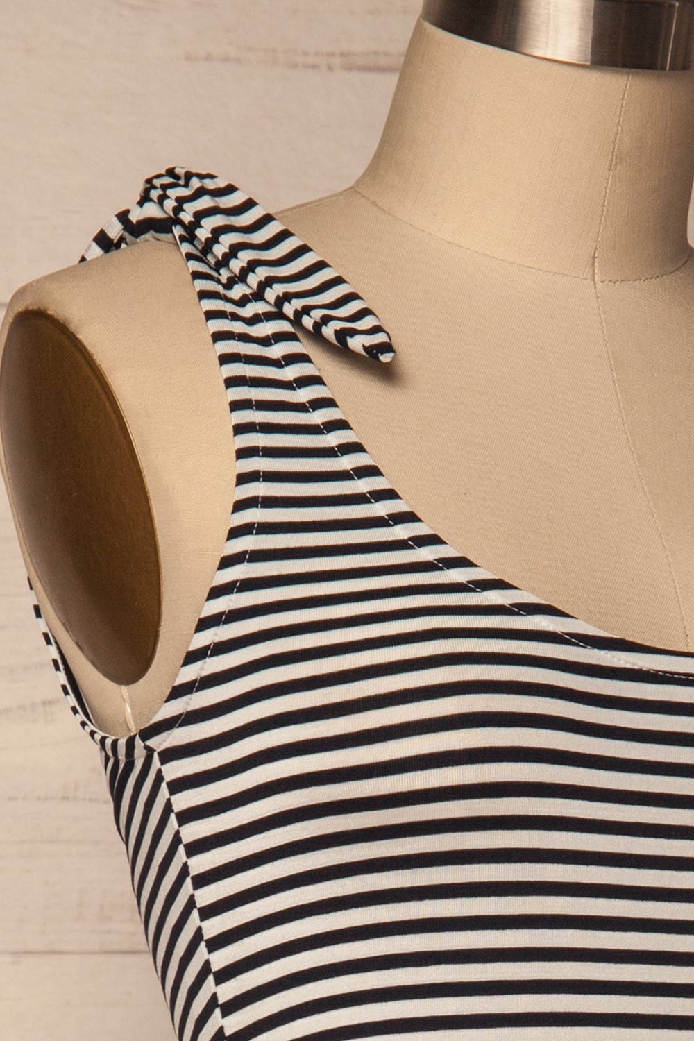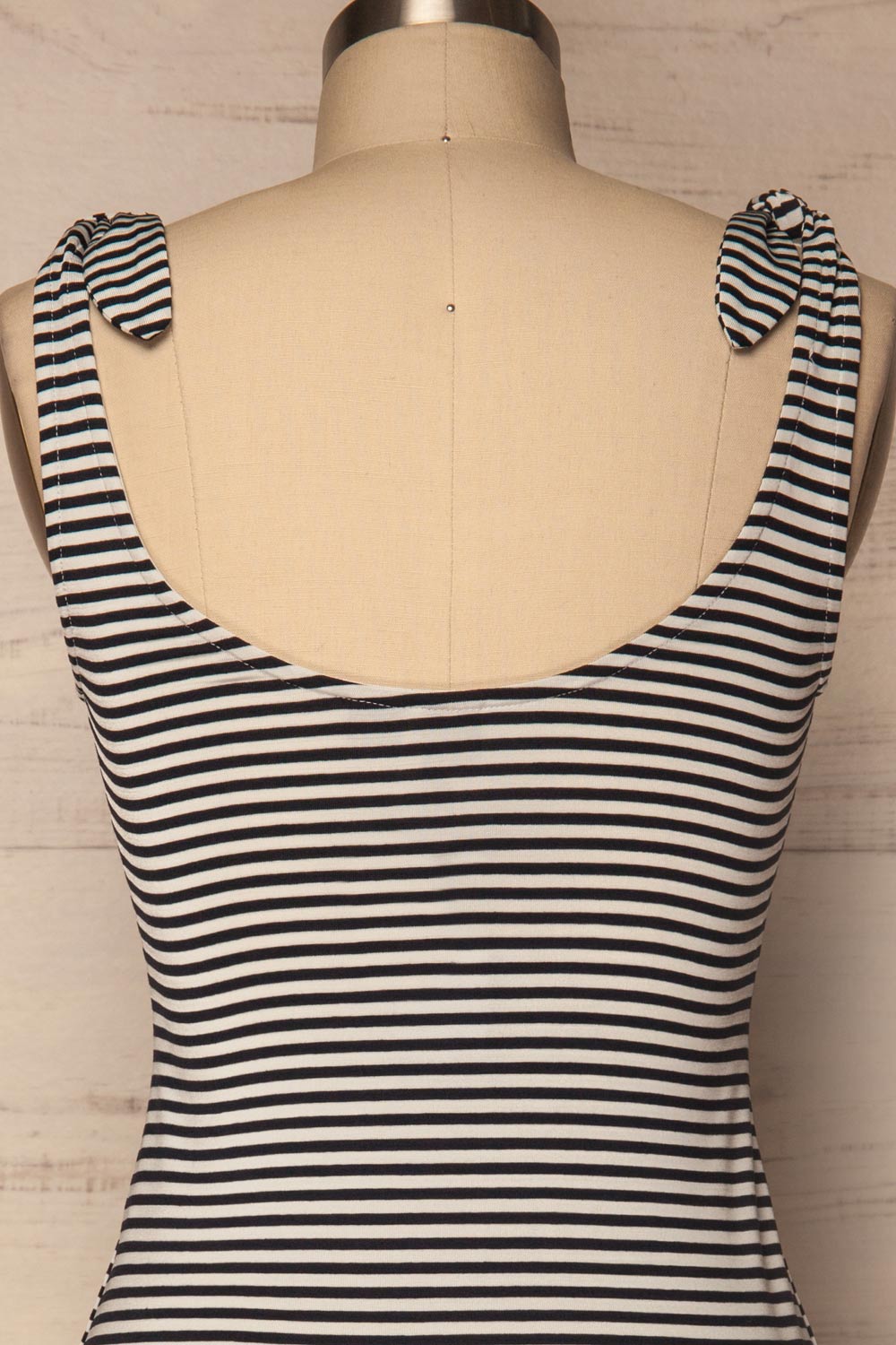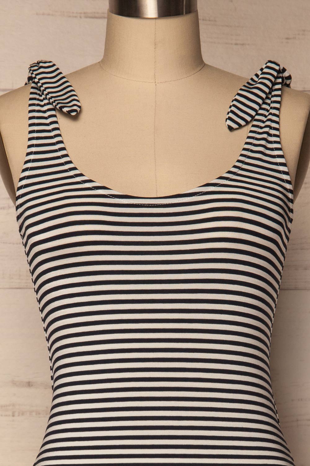 You'll love this little bodysuit for its pin-up inspired summery feel! The super stretch fabric will show off your curves while ensuring your comfort, while the knotted straps allow a tailored fit. Show off your skin thanks to the scoop neck and back. Two snaps at the gusset make it easy to slip on. Wear it with your favourite skirt or jeans for a fun and flirty outfit!