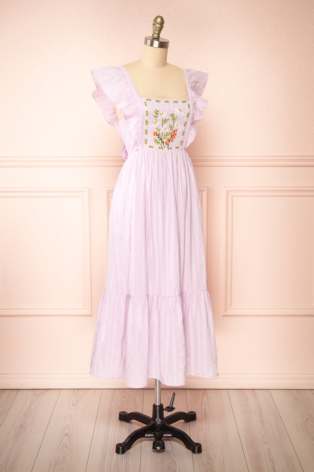 Thora Lilas | Robe Midi à Broderies Fleuries
