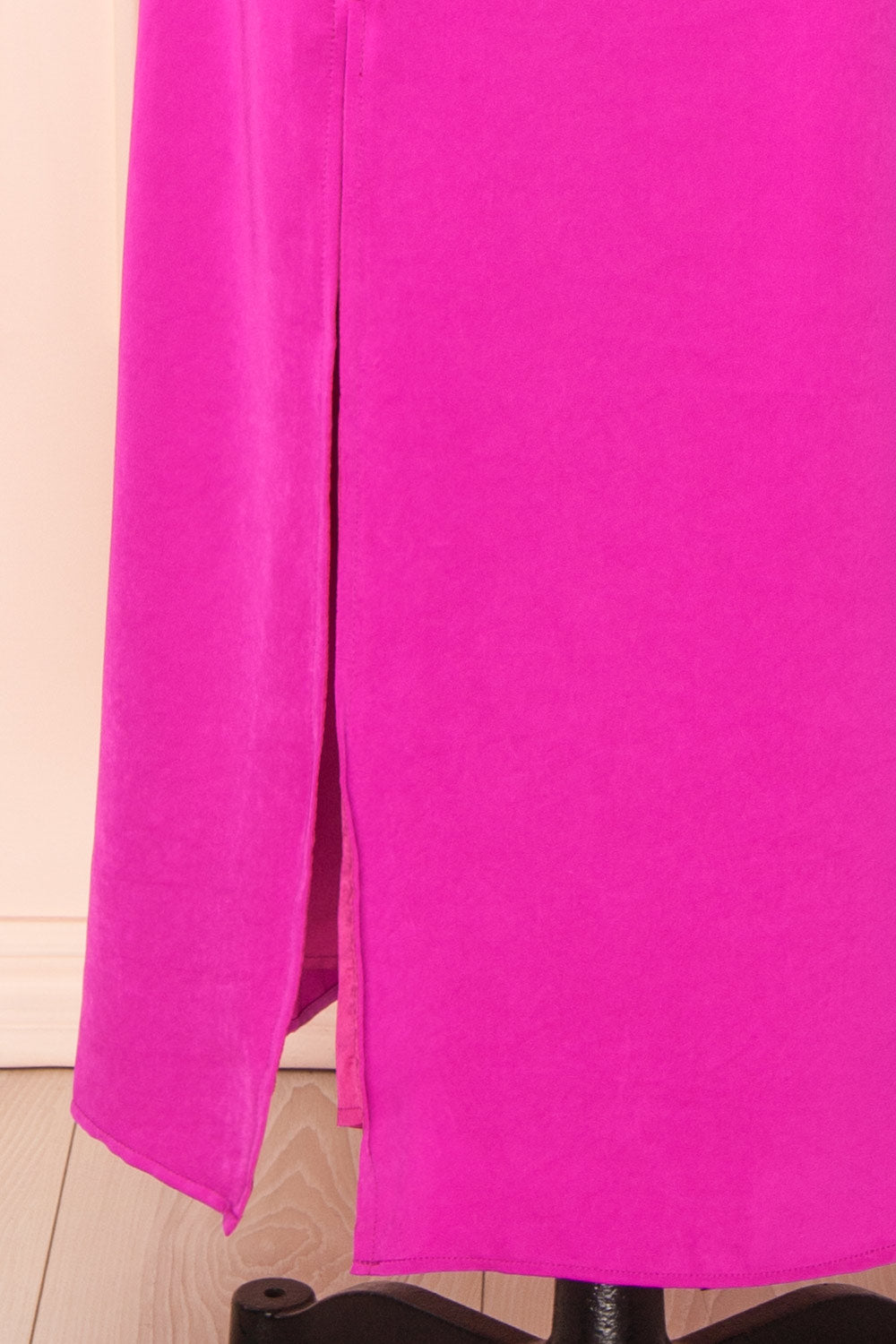 Tirielle | Robe Longue Satinée Fuchsia à Fente