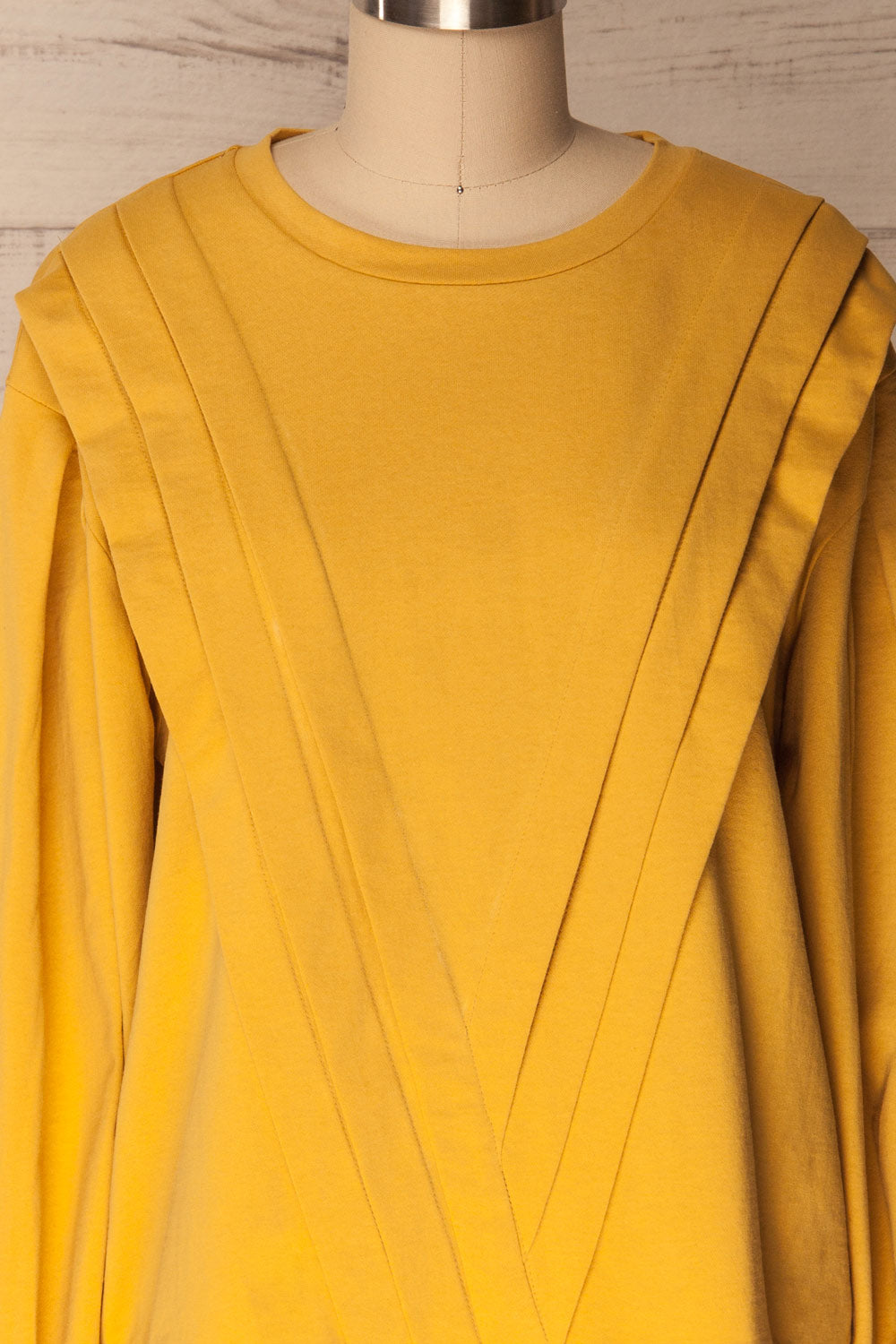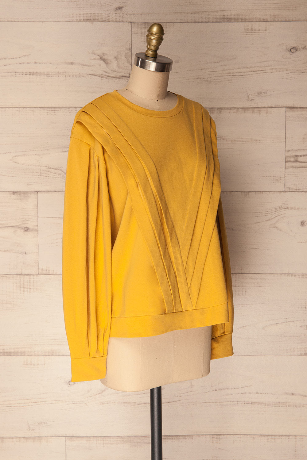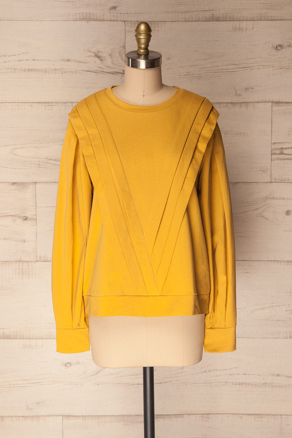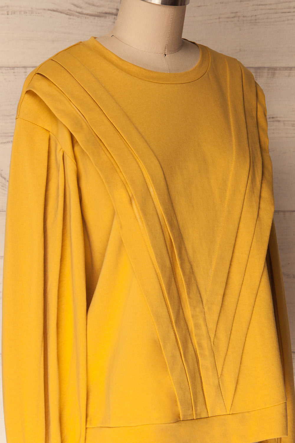 Here's a sweater you will not be able to do without! Its cotton fabric will keep you comfortable throughout the day, while the puff sleeves and pleats will add originality to your outfit. Put it over your favorite bralette for optimal comfort!