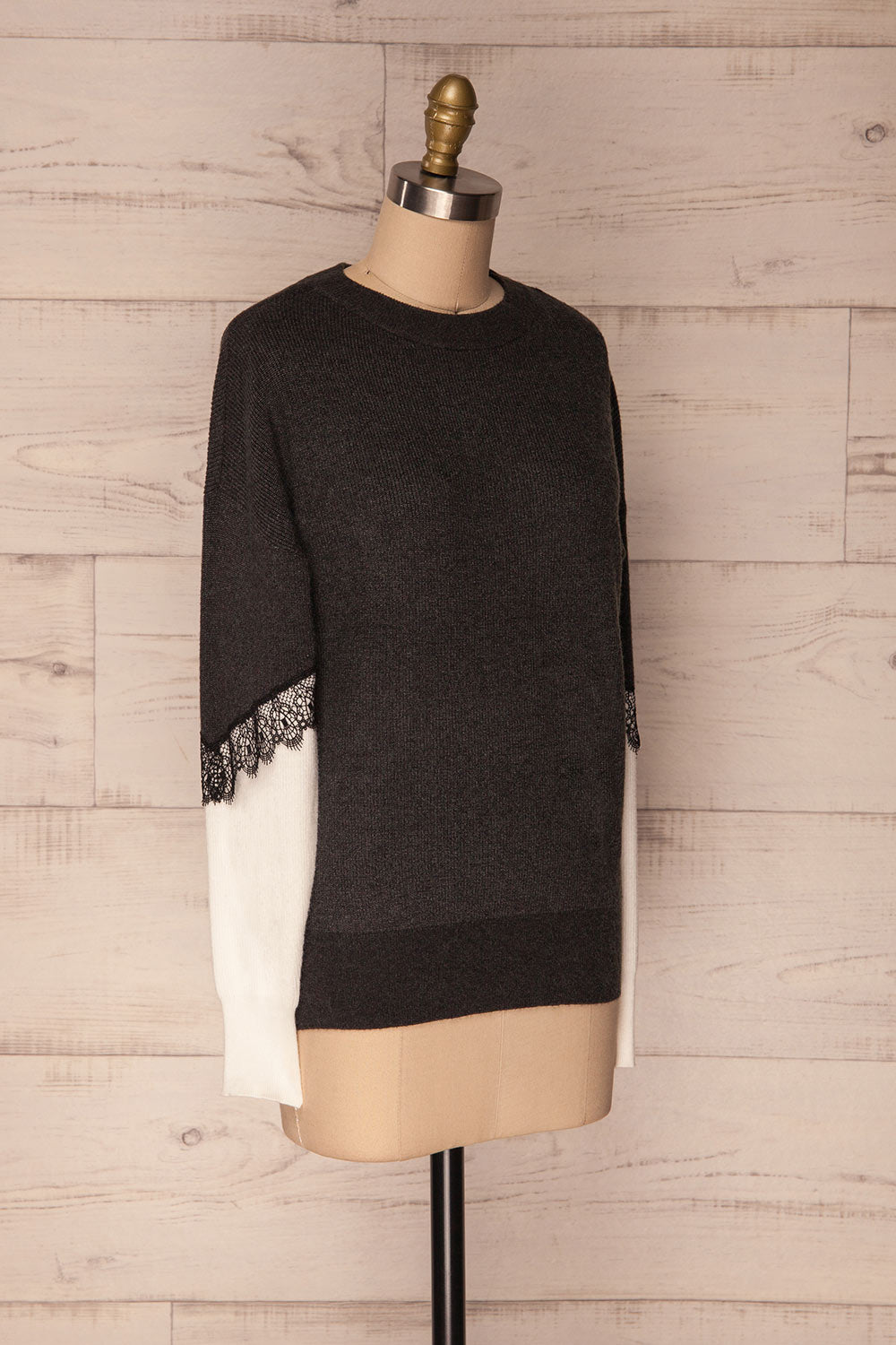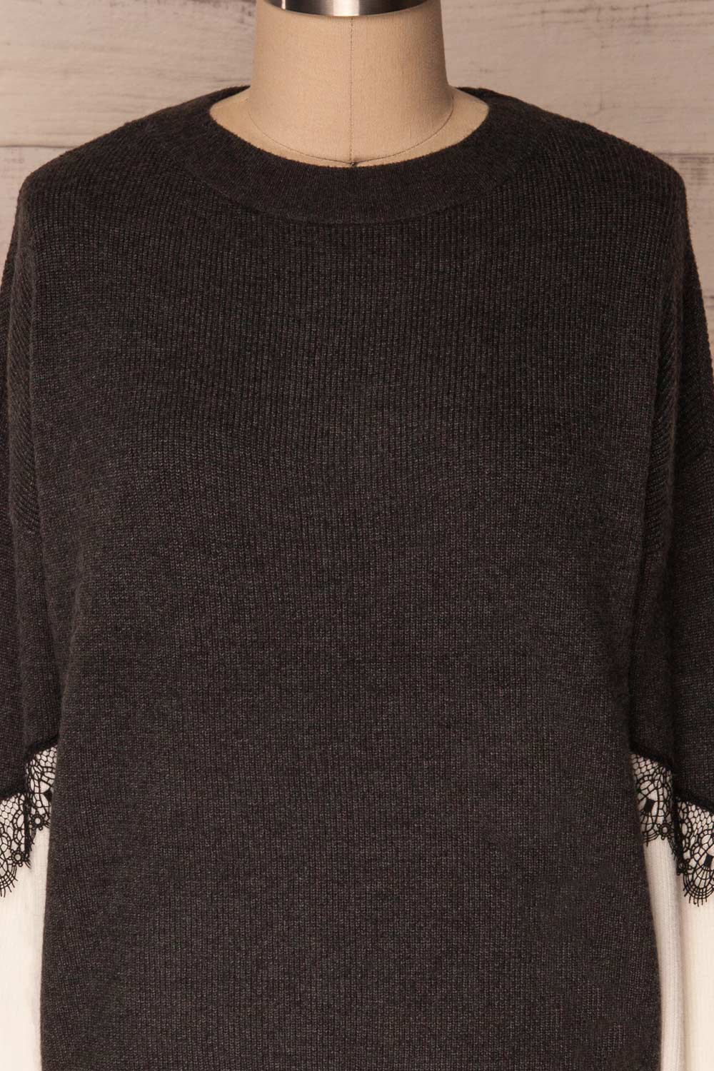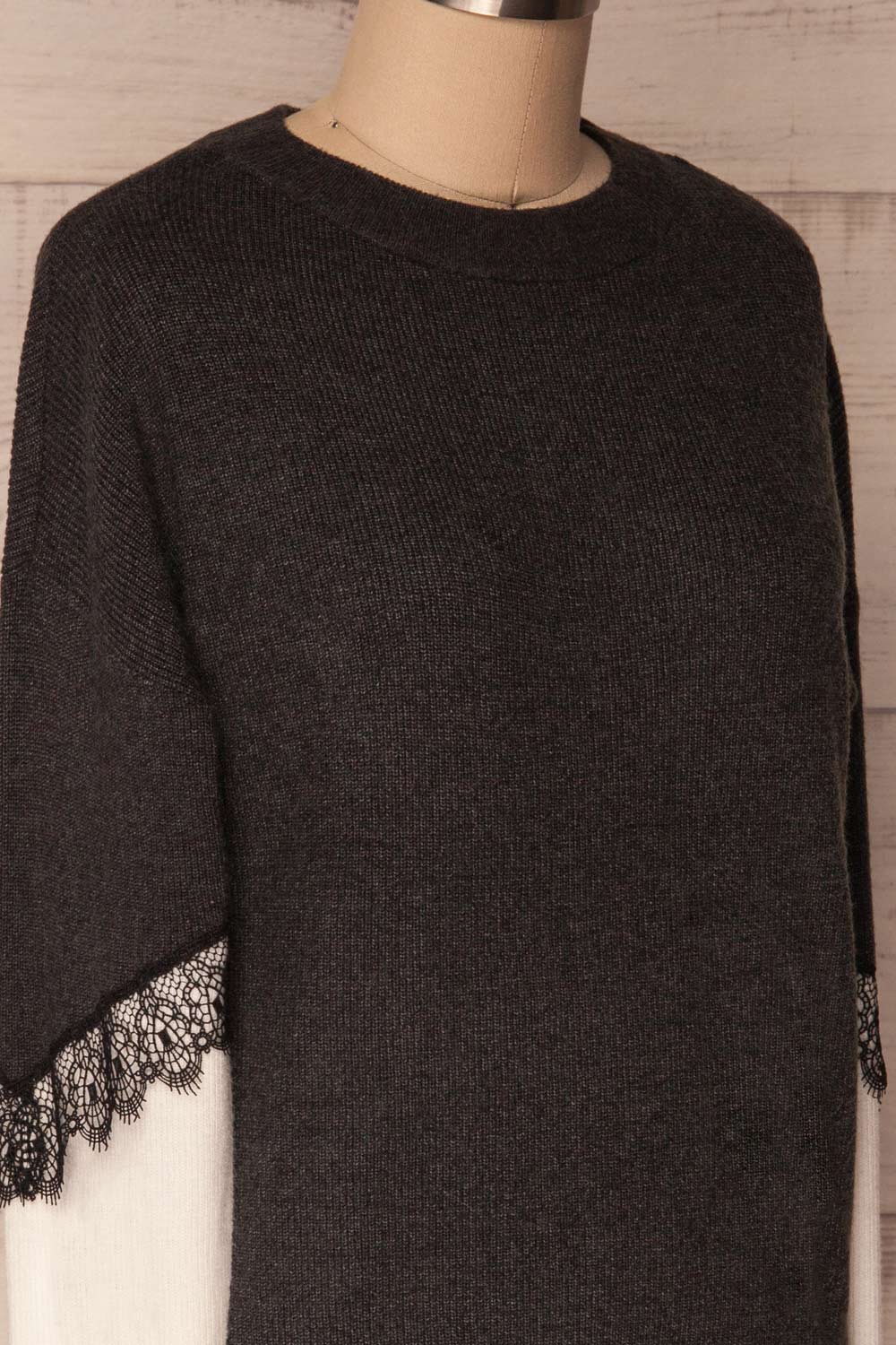 You won't have to choose between style and comfort thanks to this fabulous sweater! Its original long sleeves and stretch knit material will offer you protection against the cold, while the subtle touch of lace is charming.