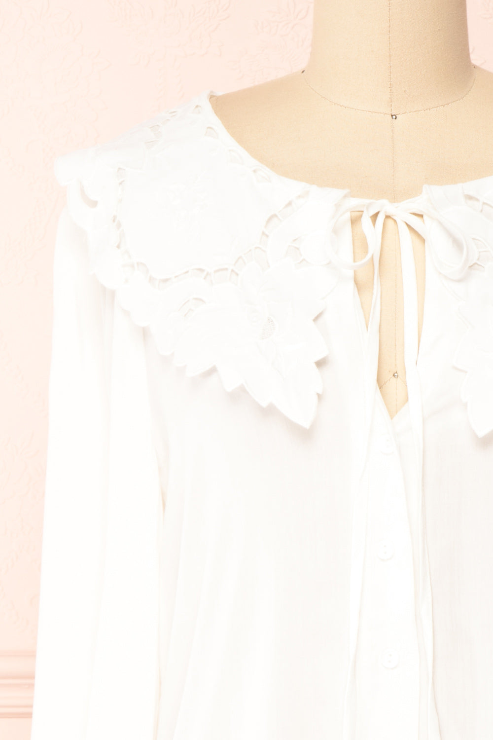 À la fois stylée et décontractée, ce charmant chemisier sera la parfaite nouvelle addition à votre garde-robe! Son col Claudine en dentelle complimenté par son cordon à nouer apporteront une touche romantique à votre tenue. Ses manches longues et sa coupe ample vous garantiront de la liberté dans vos mouvements tout en vous permettant de porter la pièce pour plus d'une occasion.