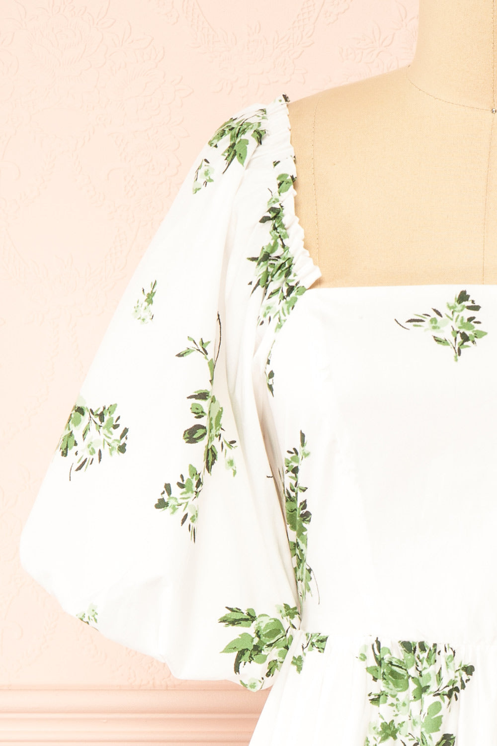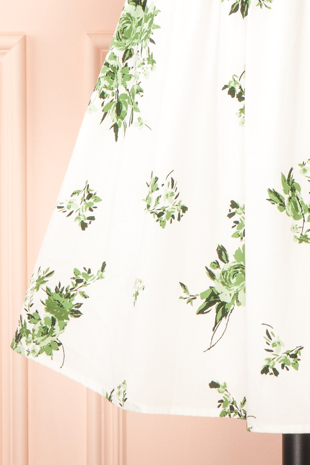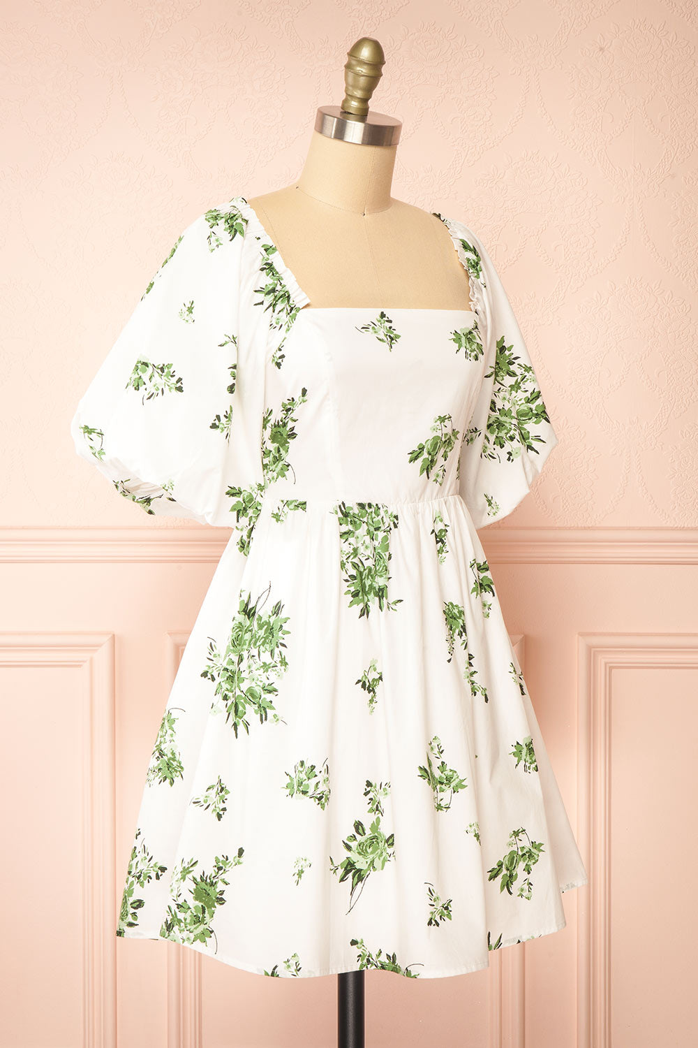 Vertuosa | Robe Courte Blanche à Fleurs Vertes