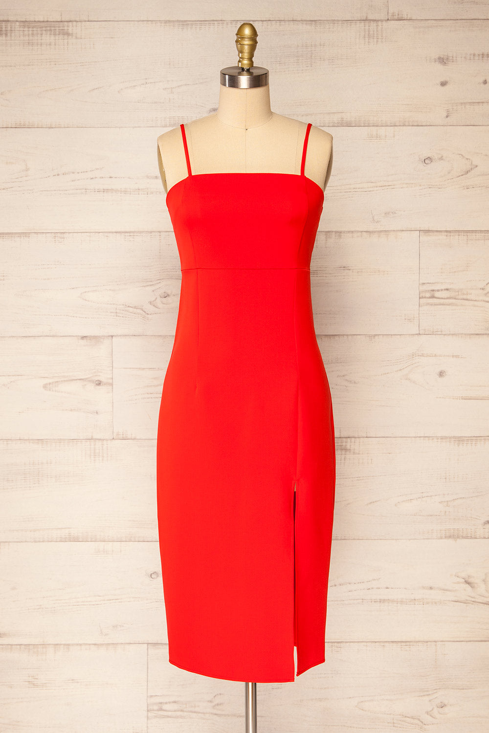 Vous ferez tourner les têtes vêtue de cette élégante robe midi! Sa coupe ajustée mettra en valeur votre magnifique silhouette tandis que sa fente latérale dévoilera subtilement votre peau. Sa simplicité la rendra facile à agencer avec vos plus beaux accessoires. Munie d'une fermeture éclaire discrète et de bretelles ajustables, elle vous garantira confort et assurance!