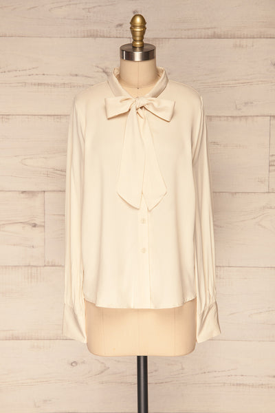 Cette version unique de la chemise classique vous offrira style et confort! Vous adorerez son tissu léger et fluide, tandis que les boutons à l'avant vous seront pratiques. Le col à nouer donne une touche originale à ce haut. Que vous le portiez avec un pantalon de denim ou une longue jupe, votre look sera impeccable!